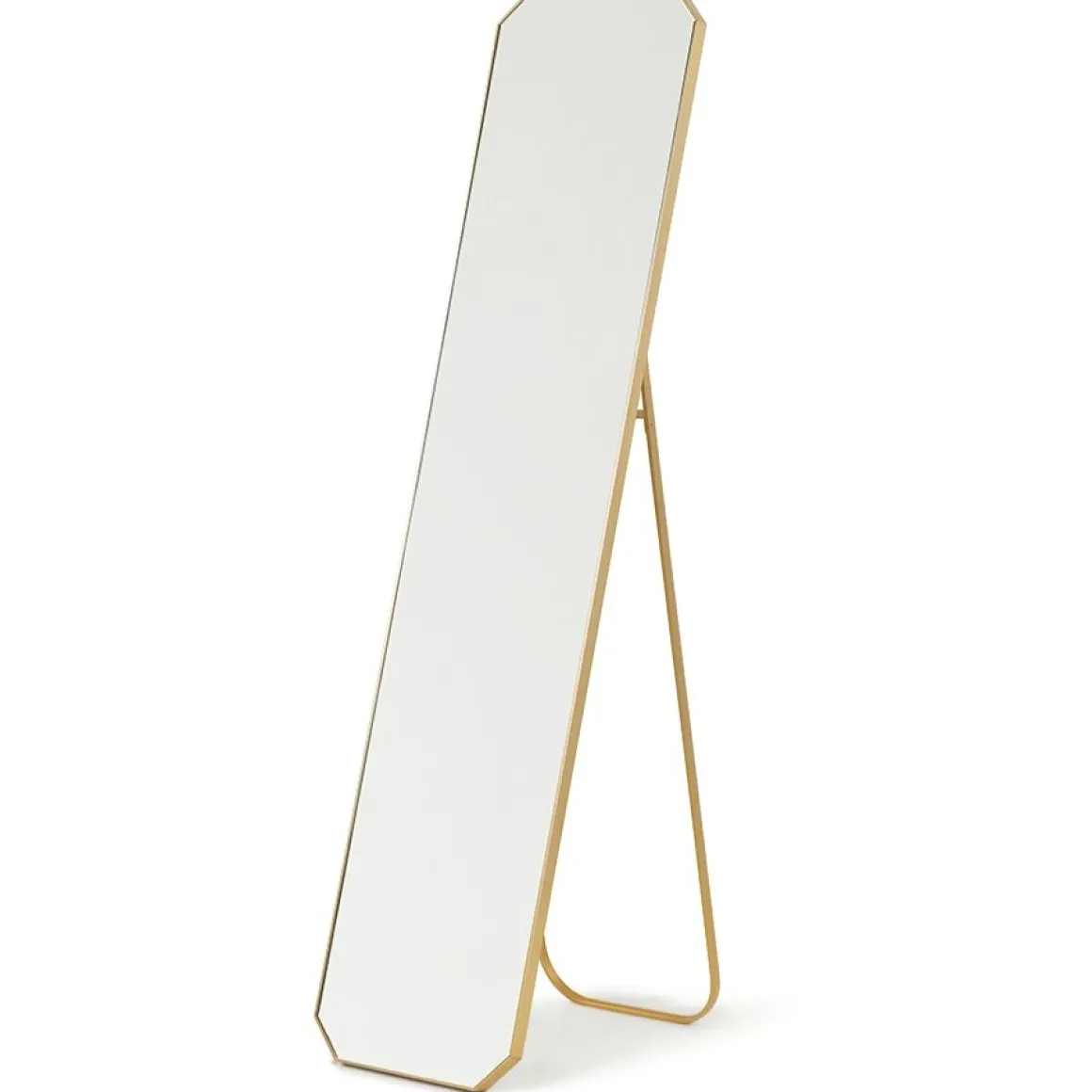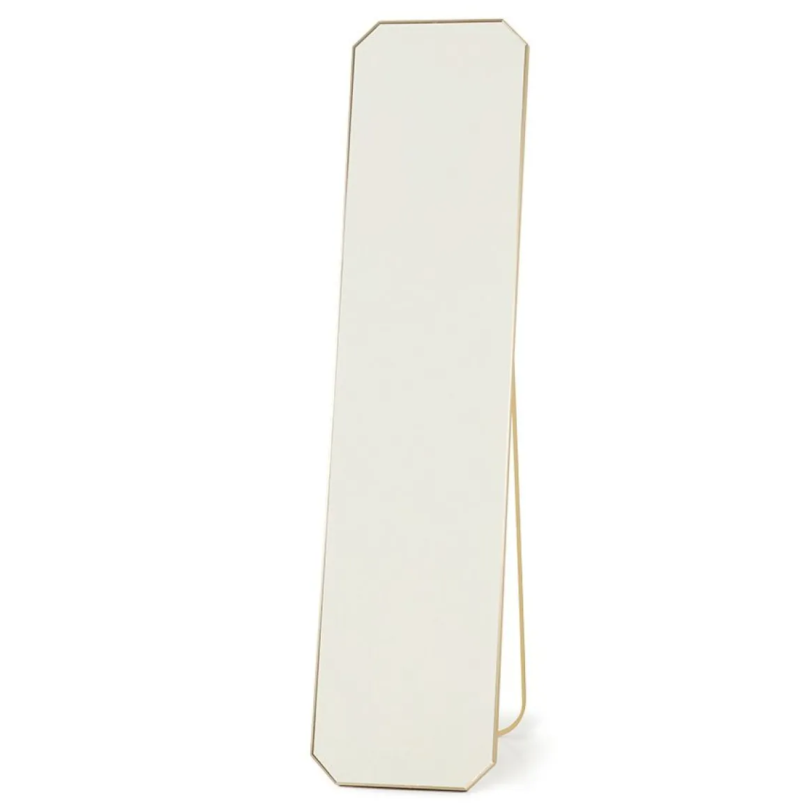 Un miroir au sol en laiton brossé.
