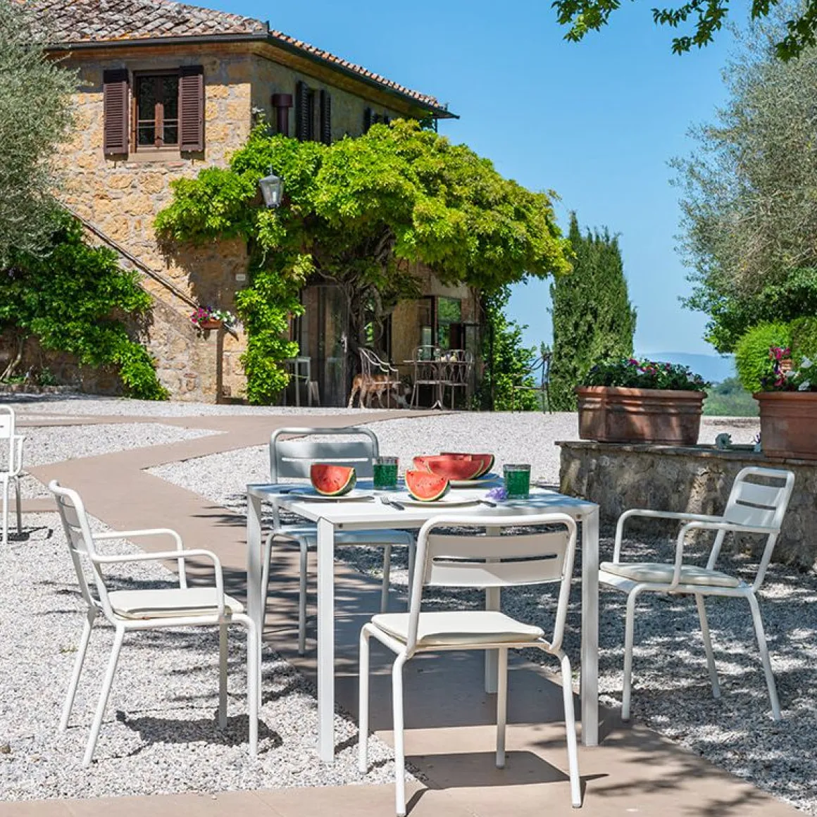 Star est une table dessinée par Emu. Rectangulaire, elle est simple et discrète. Comme un bureau, elle apportera une touche design avec sa tôle. Comme salle à manger, elle offre un espace convivial où on aime se retrouver. Combinée avec les chaises, Star est une salle à manger parfaite. On adore ce côté « bistrotparisien ». Mais elle peut aussi bien prendre place à l’extérieur.