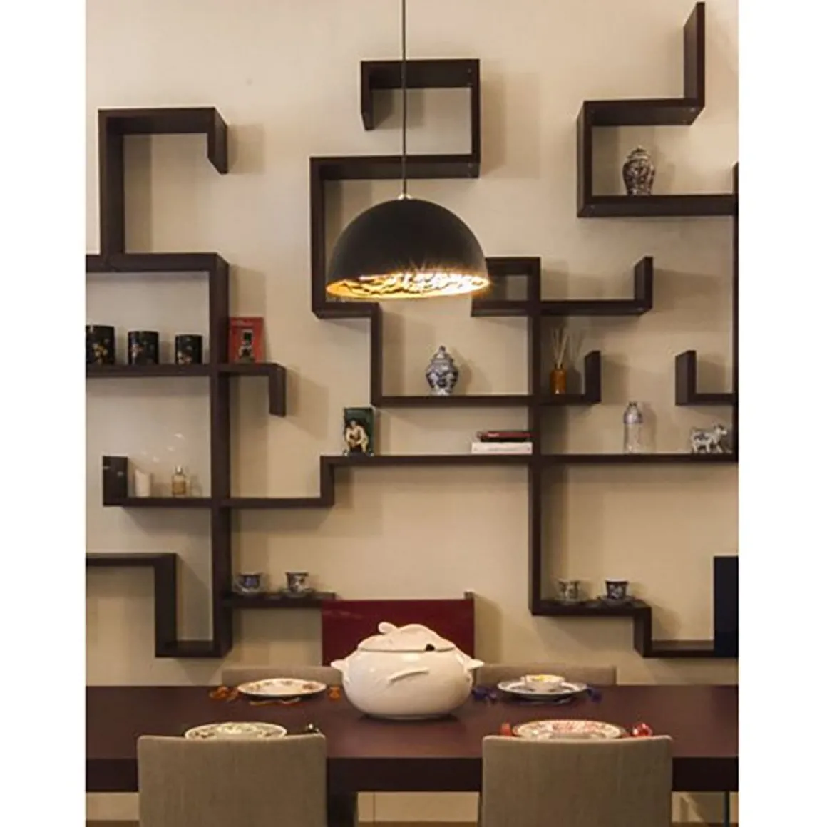 Stchu-Moon sépare la source de lumière de la lampe, ce qui prend sa propre valeur esthétique en conséquence. Ces objets sont tous fabriqués par des artisans spécialisés et sont donc des pièces totalement uniques. La réfraction de la lumière joint des forces avec des surfaces intentionnellement irrégulières qui multiplient la qualité de la lumière et rendent l’objet lui-même tout léger. Les surfaces irrégulières sont bordées de feuilles dorées, argentées et cuivrées.