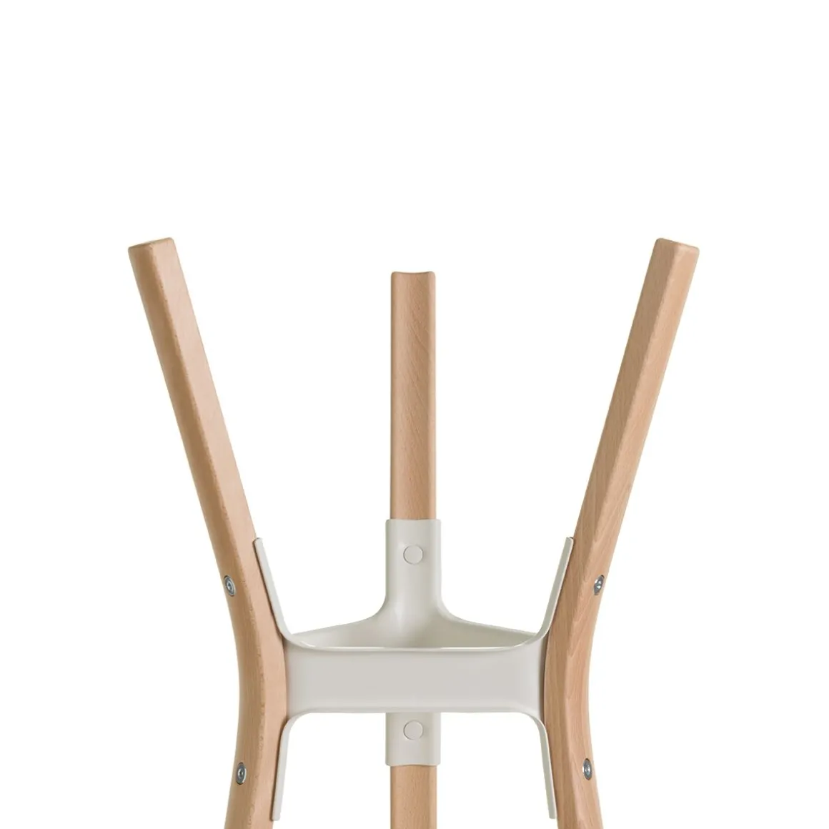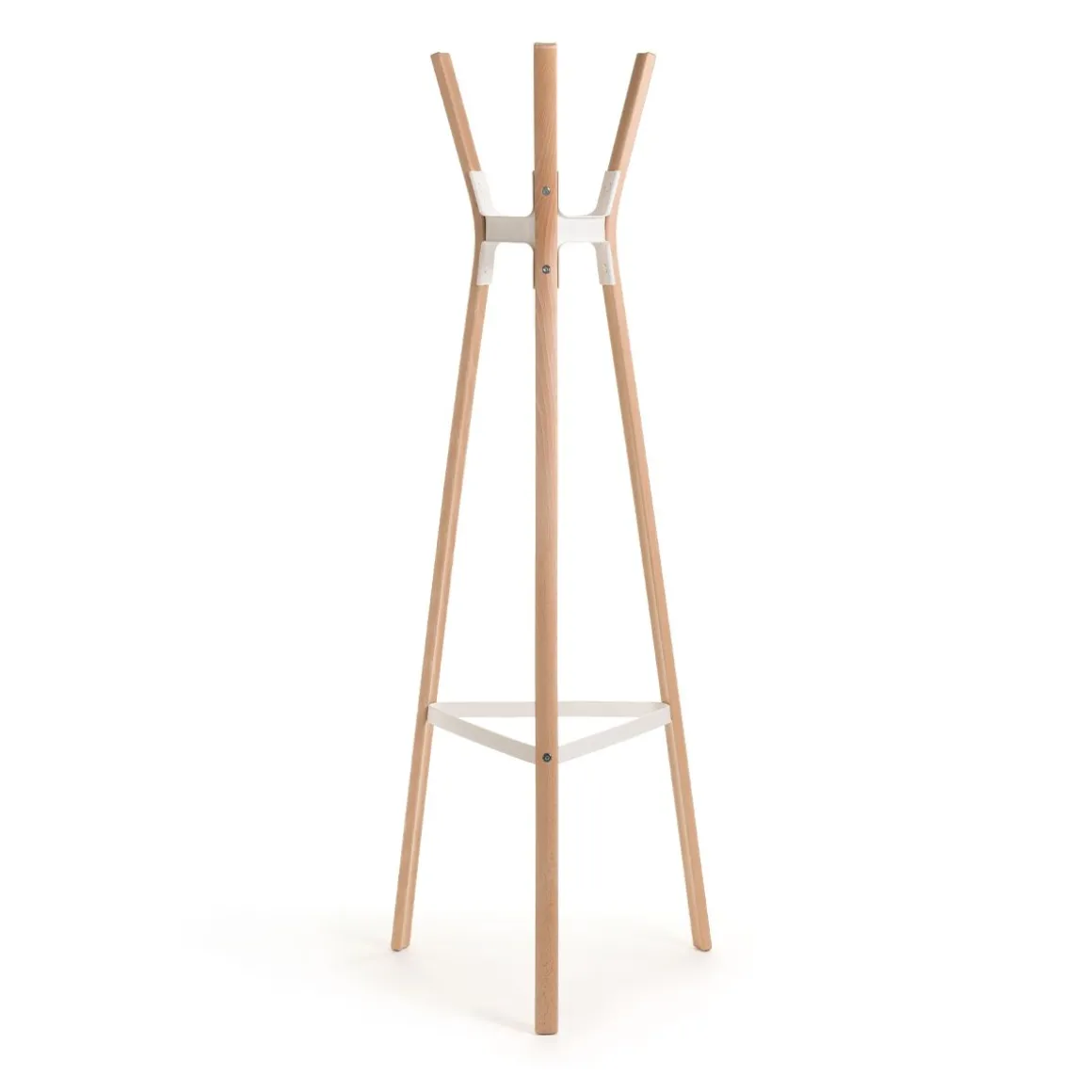 Le porte manteaux Steelwood de Magis, par les frères Bouroullec, a sa structure en hêtre massif et ses joints sont en tôle d’acier verni en résine époxy.