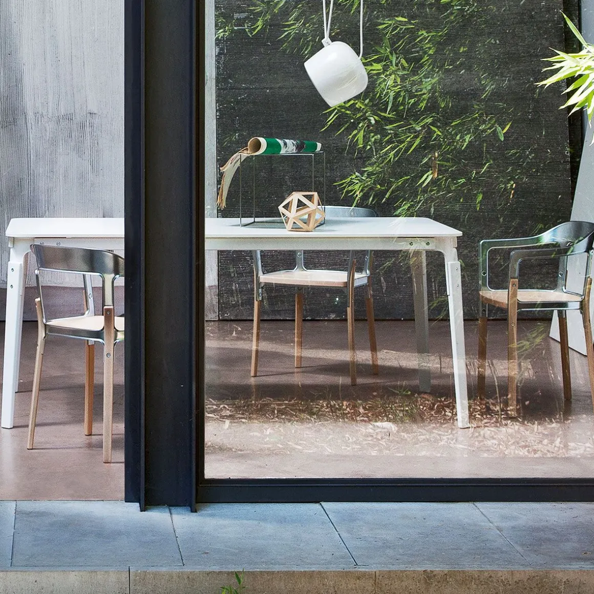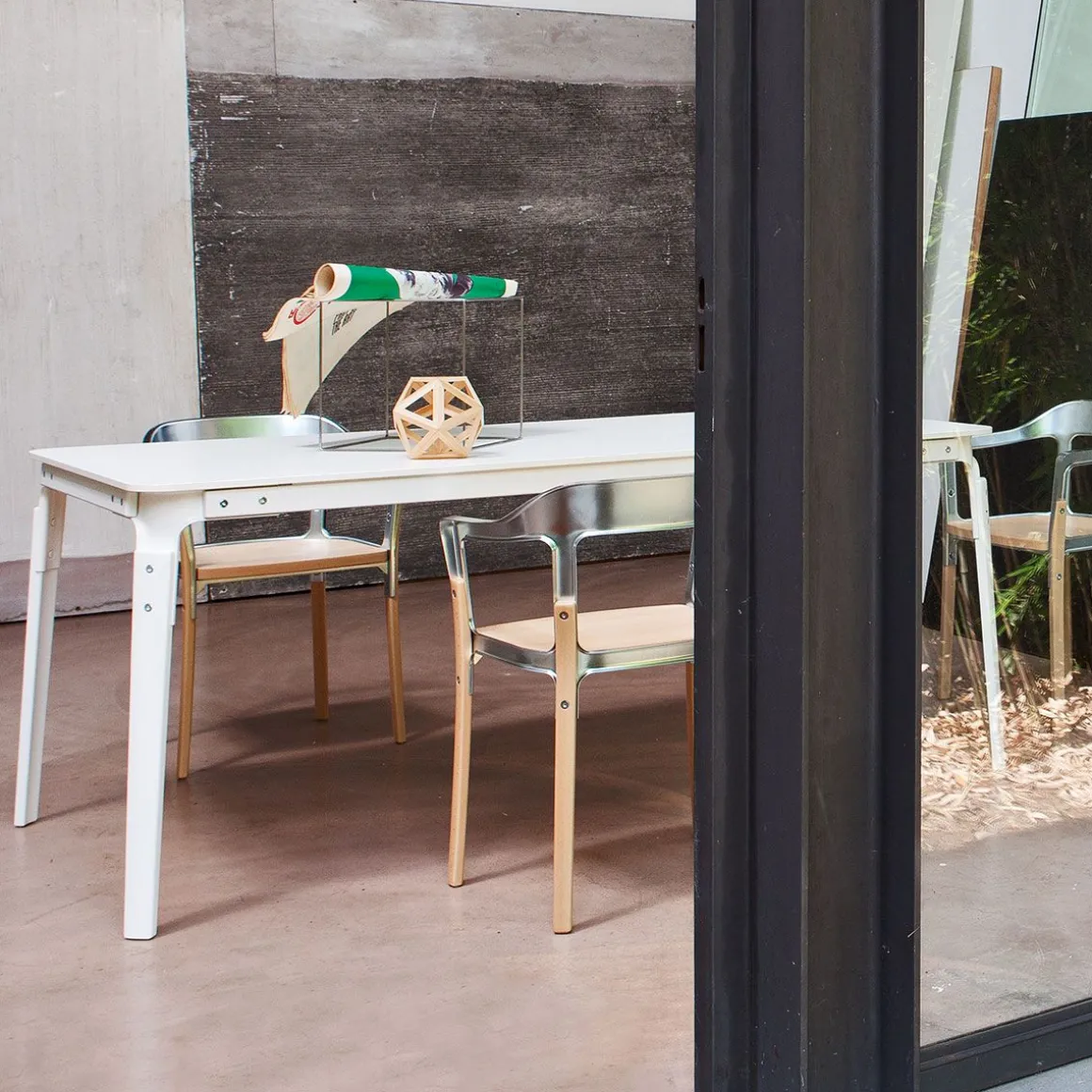 Steelwood est une table de Magis par le designer Ronan & Erwan Bouroullec pour l’installation d’intérieur en 2008. Elle vient d’une célèbre série, il existe d’autres versions étagère et table. Cette table nous charme par son style pur et son design simple mais classieux.