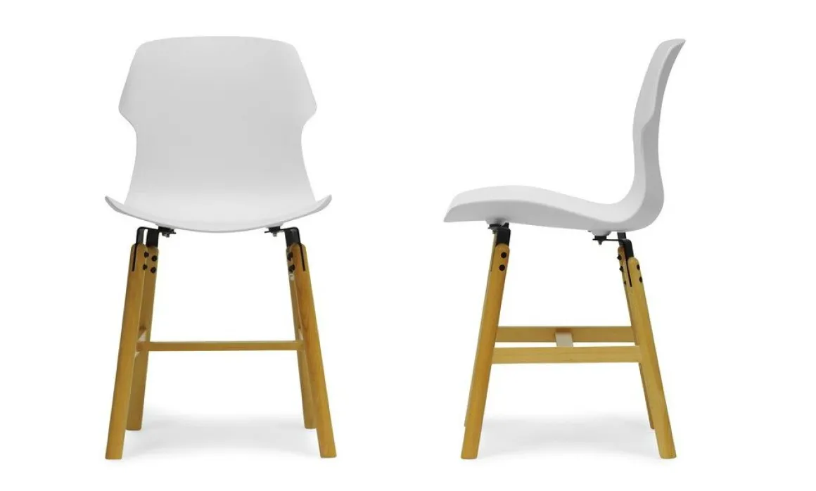 Stereo Wood de Casamania avec ses pieds en chêne naturel donne un aspect de chaleur et de confort. L’assise en polypropylène de cette chaise est brillante à l’arrière et mate à l’avant.