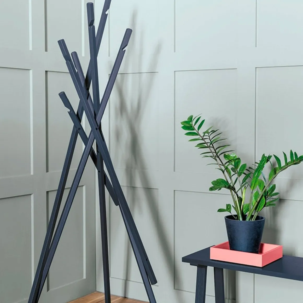 Sticks de Schönbuch par Michael Schwebius. Le portemanteau STICKS est un classique intemporel composé de six tiges en bois massif inclinées et de section rectangulaire. À l’extrémité supérieure de chacune d’elles se trouve une encoche qui offre une capacité de suspension supplémentaire. Dénudé, STICKS ressemble à une installation artistique. Il peut accueillir des vestes, des serviettes et autres objets du même genre et fait preuve de sa fonctionnalité dans les couloirs, les chambres d’amis et les salles de bains, ainsi que dans les bureaux et les salles d’attente. (STICKS est livré partiellement monté et avec tout le matériel de fixation nécessaire). Effet wow garanti.
