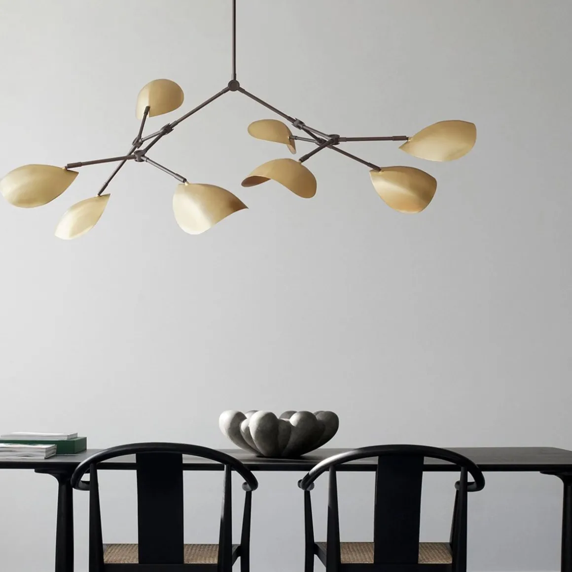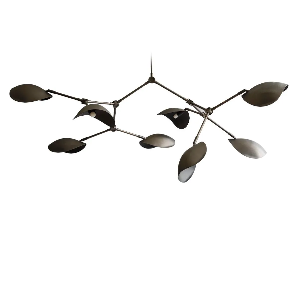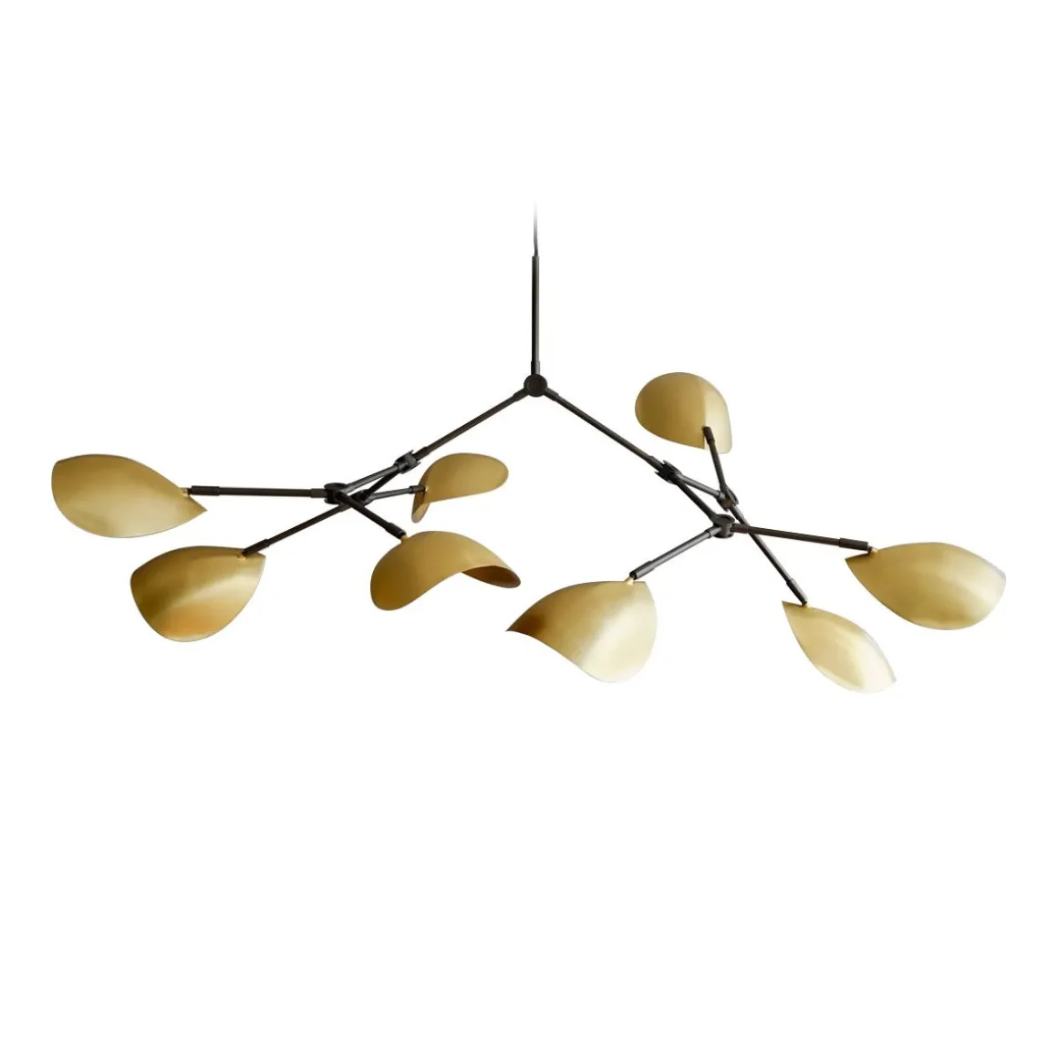 Vous sentez presque le mouvement du Drop Chandelier. En tant que sculpture fluide, elle s’empare de l’espace et insiste sur une vie propre – tout comme le mouvement flottant du poisson Stingray qui est l’inspiration derrière la conception des abat-jour. Alors que la collection The Drop Chandelier honore les conceptions de lampes modernistes des années 1950, elle célèbre également une approche expérimentale et innovante avec ses abat-jour légèrement incurvés et ses 14 bras réglables flexibles et fonctionnels – créant d’innombrables options, variations et angles. Le corps en métal plaqué magnifiquement travaillé est ensuite brossé à la main et la lampe illumine la pièce avec élégance avec une lumière chaude et agréable.