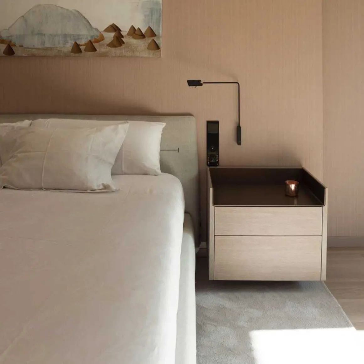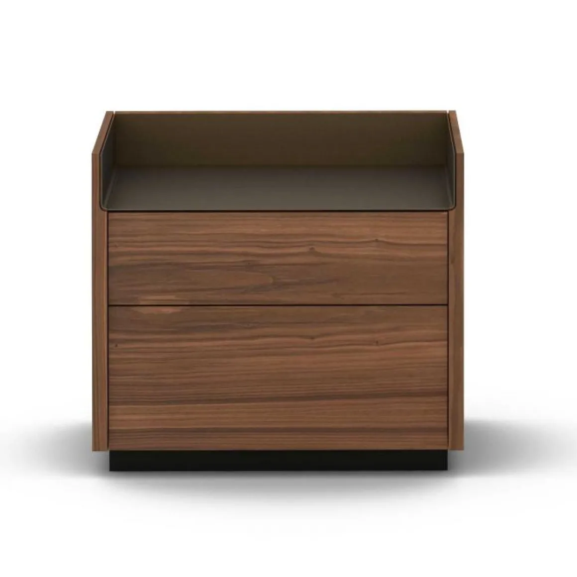 Finitions chêne teinté noir avec dessus or ou rose / chêne blanchi avec dessus bronze / noyer super mat avec dessus bronze