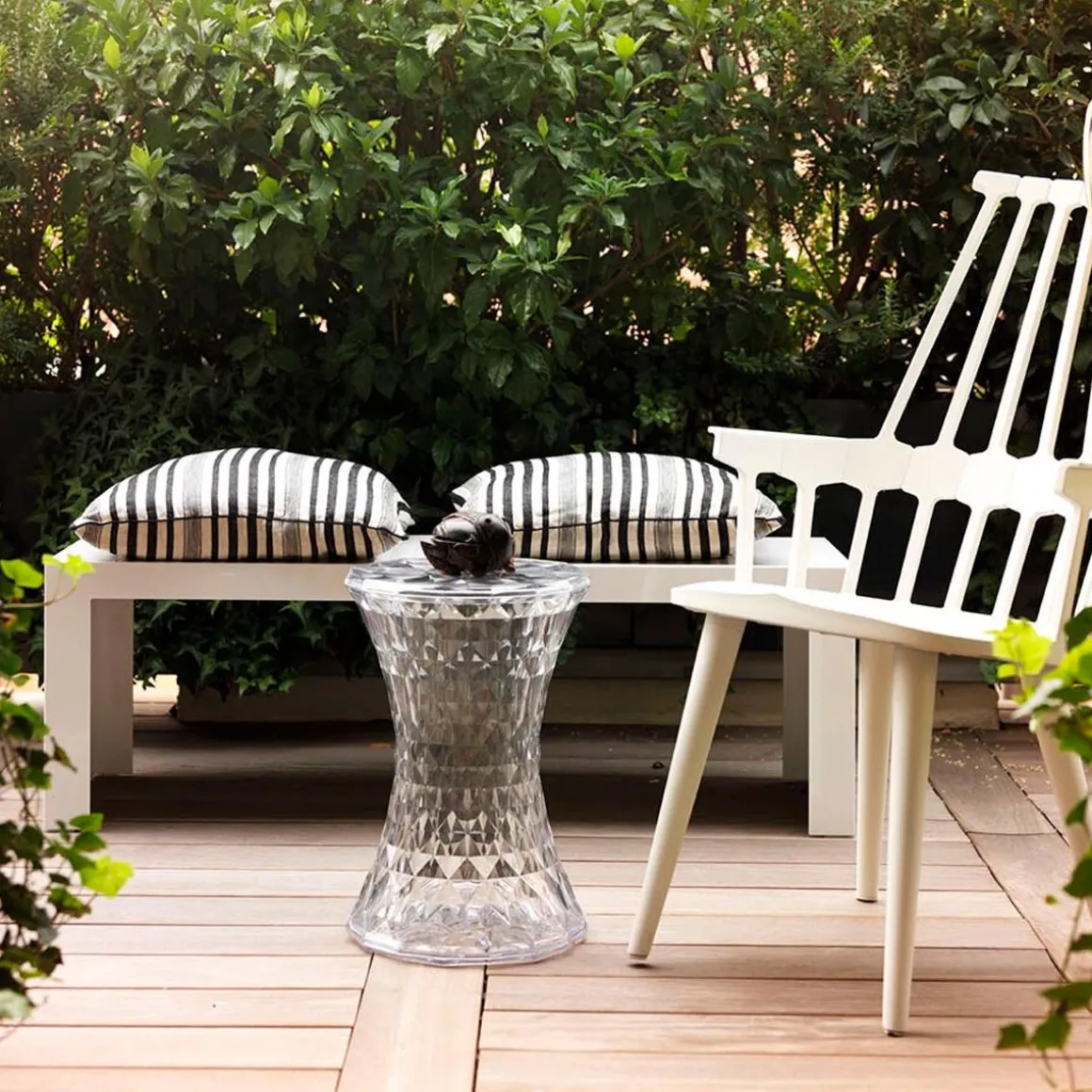 Stone est un petit tabouret aux formes très simples. Bien que sa ligne soit épurée, linéaire et symétrique, sa surface est véritablement hors du commun : irrégulière, elle se compose de nombreuses facettes géométriques qui donnent lieu à un jeu de couleurs particulier et lui confèrent l’aspect d’un diamant.