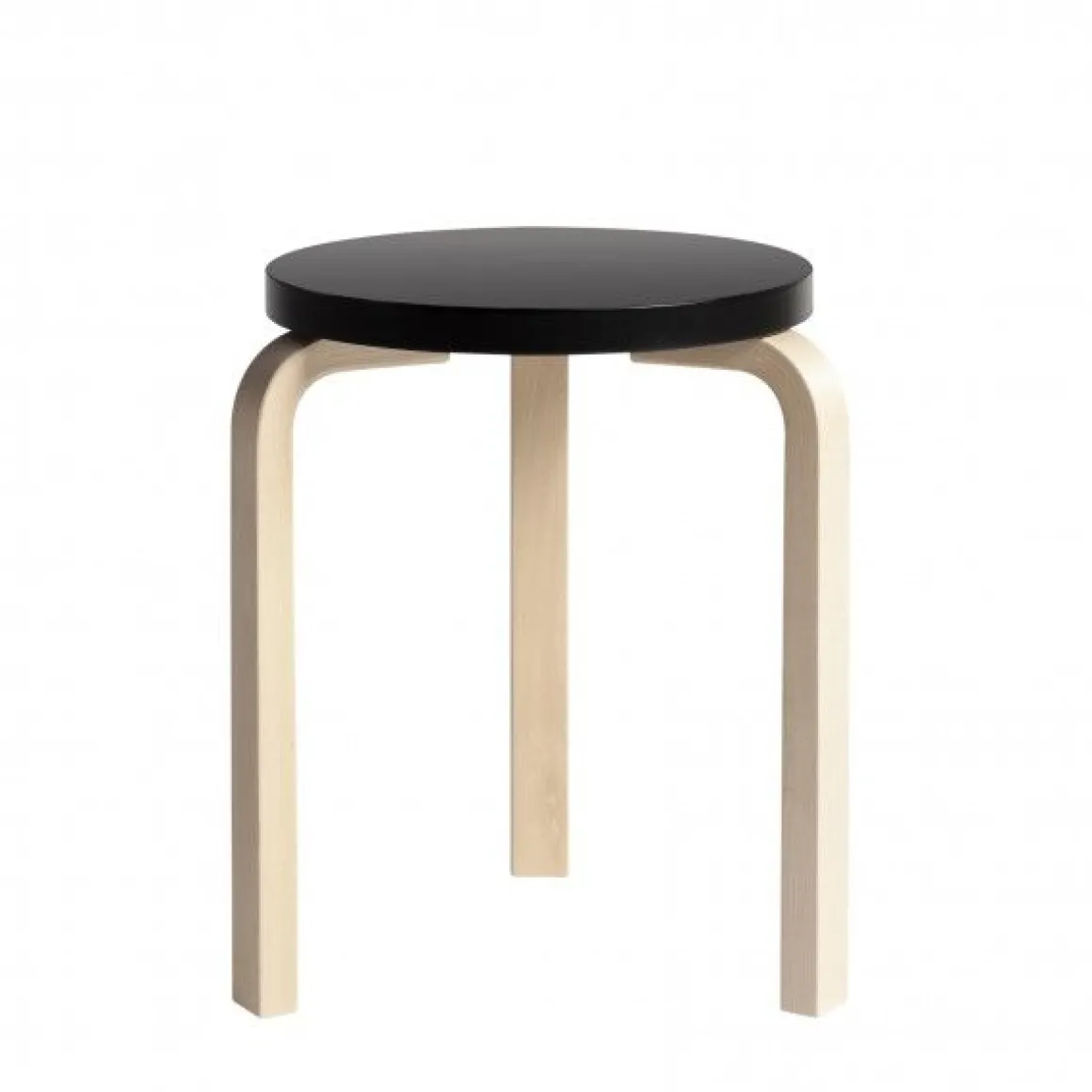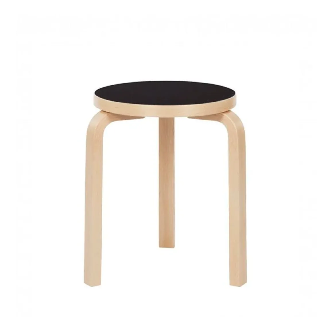 Le très célèbre et mythique tabouret 60 d’Alvar Aalto est le produit Artek le plus vendu au monde et a inspiré toute une génération de meubles. Preuve de son succès, sa production n’a pas été interrompue depuis 1933. La construction unique et brevetée des trois pieds en forme de L fut le fruit de plusieurs années de recherche. Le résultat était révolutionnaire à l’époque, le bois remplaçant peu à peu les pieds en acier plié, communément utilisés, pour un résultat plus naturel. Les techniques de fabrication mises au point en 1932, sont toujours appliquées aujourd’hui, pour l’ensemble de la collection de meubles édités par Artek. L’association du bois massif et du bois multipli, qui permet cette forme arrondie des pieds, leur procure en outre une grande solidité. Le tabouret 60 est néanmoins léger et facile à transporter. Il trouvera sa place partout dans la maison, que ce soit dans des intérieurs modernes ou plus traditionnels. Déclinée en de multiples versions, le tabouret est très design avec ses coloris modernes et sa forme originale !