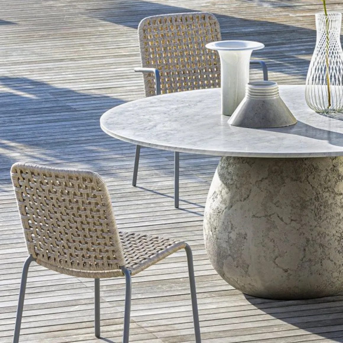Straw 23 Chaise de Gervasoni par Paola Navone. Chaise tressée en une triple corde en polyéthylène tressée de couleur naturel, structure en aluminium laqué gris clair.