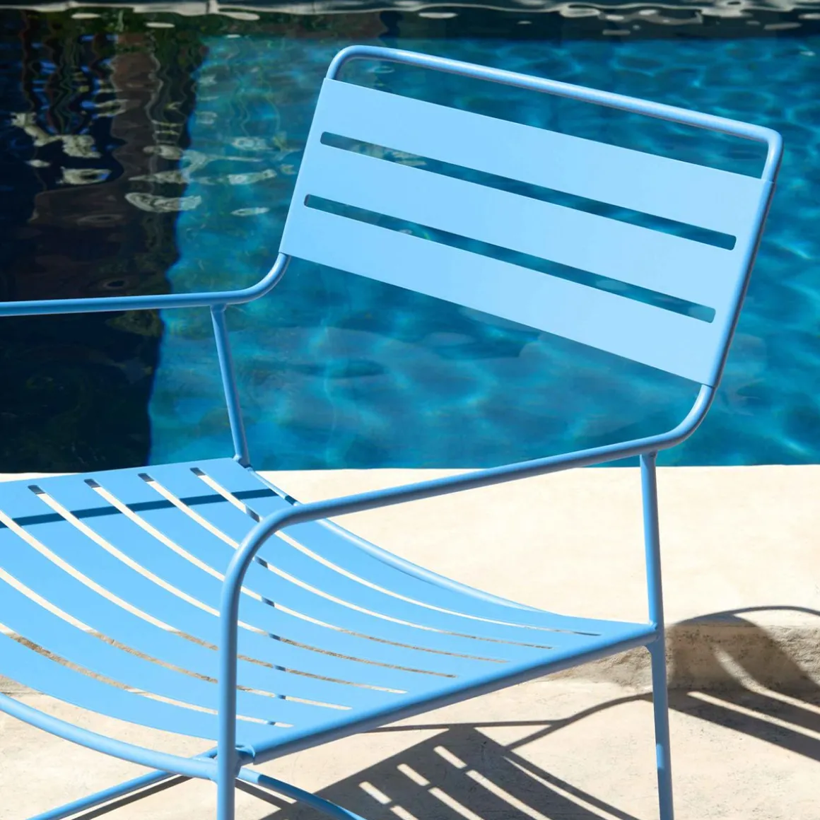 Surprising fauteuil bas de Fermob. Grâce à la souplesse de l’acier et à un véritable souci ergonomique, ce fauteuil présente un confort qui n’a rien à envier à son lointain cousin british. Associez-le à une des nombreuses tables basses Fermob, pour un superbe salon de jardin, à la fois design et à l’épreuve des agressions climatiques. A l’intérieur, agrémenté de quelques coussins et d’un plaid, il amènera la touche d’élégance et de modernité à votre salon.