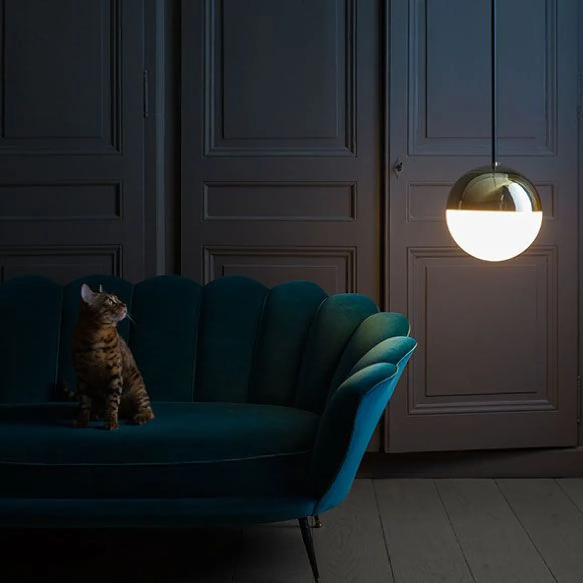 Cette suspension, fabriquée en six différentes hauteurs, est-elle vraiment une suspension? Selon la hauteur choisie, elle se fait lampe de chevet, lampe de lecture, ou rythme l’espace. Ainsi Marie Lise Fery privilégie l’illusion de légèreté et du mouvement grâce au voyage imaginaire parcouru par le luminaire dans l’espace.
