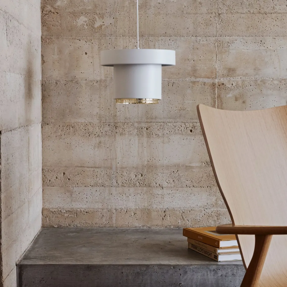 La suspension lumineuse A201 a été conçue par Alvar Aalto en 1952 pour la bibliothèque de l’hôtel de ville de Säynätsalo en Finlande centrale. Composée de tôle d’acier formée, la suspension lumineuse A201 possède une présence sculpturale ; sa beauté peut être appréciée qu’elle soit allumée ou éteinte. La lumière sortant de la partie inférieure et supérieure de l’abat-jour crée un magnifique halo, typique d’Aalto qui cherchait à rendre la lumière artificielle aussi indirecte et douce que possible. L’A201 est disponible en blanc standard avec des détails en laiton, inspirée de la triple variation de la lumière (A203) suspendue au-dessus de la table à manger dans la maison privée d’Helsinki des Aaltos.