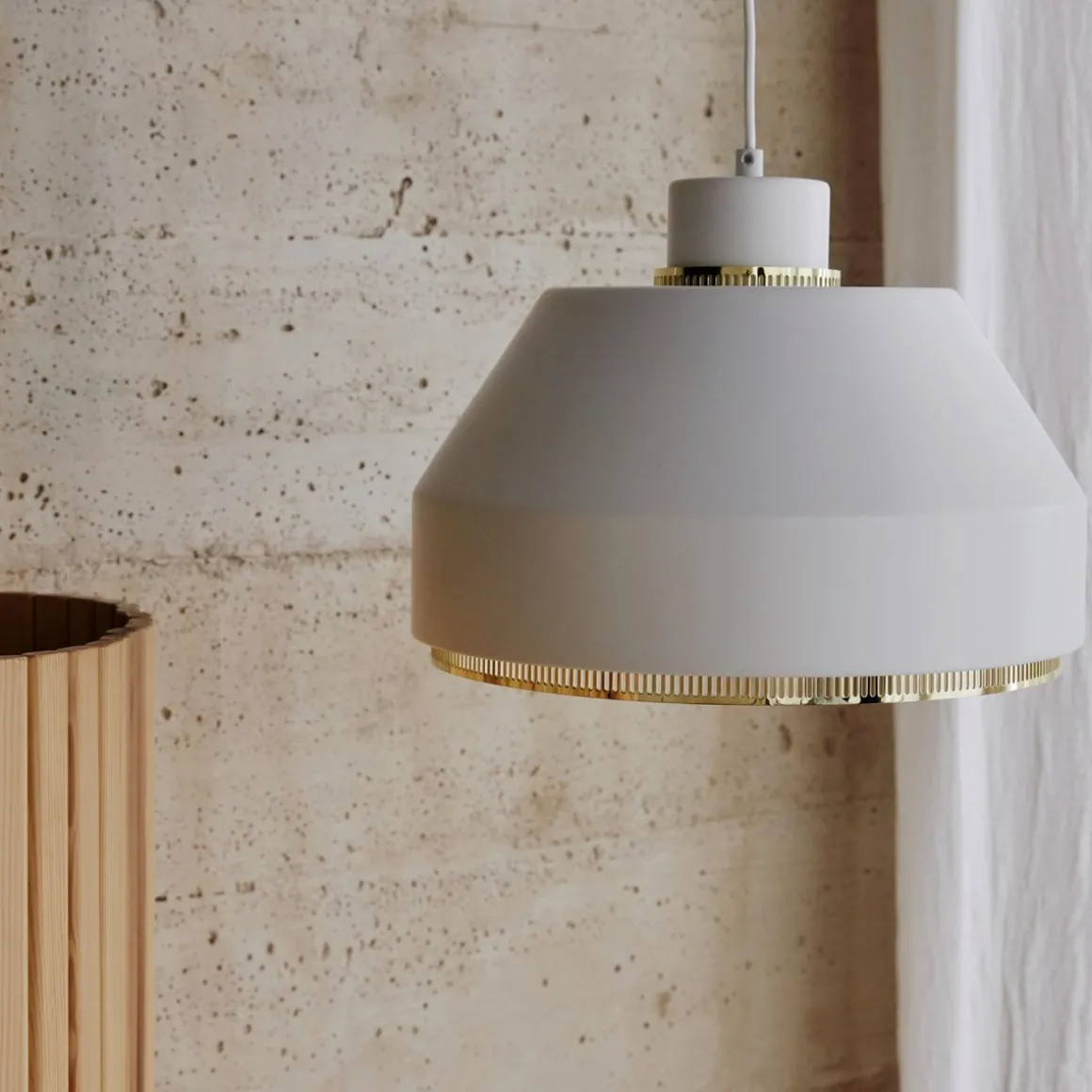 Offrant une lumière douce et chaleureuse, la suspension AMA500 est de taille moyenne et composée de tôle d’acier. Convient comme source de lumière unique au-dessus d’une table à manger ou d’un bureau, sa largeur généreuse diffuse une quantité substantielle de lumière vers le bas. Véritable pièce maîtresse, l’AMA500 est disponible en coloris blanc classique avec des détails en laiton, identique à la suspension suspendue dans la bibliothèque du chef-d’œuvre d’Aaltos Villa Mairea.