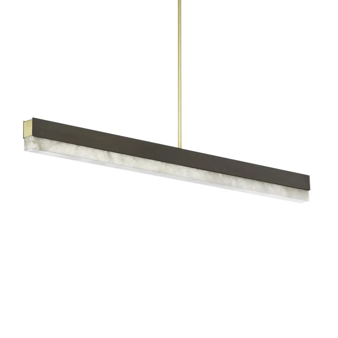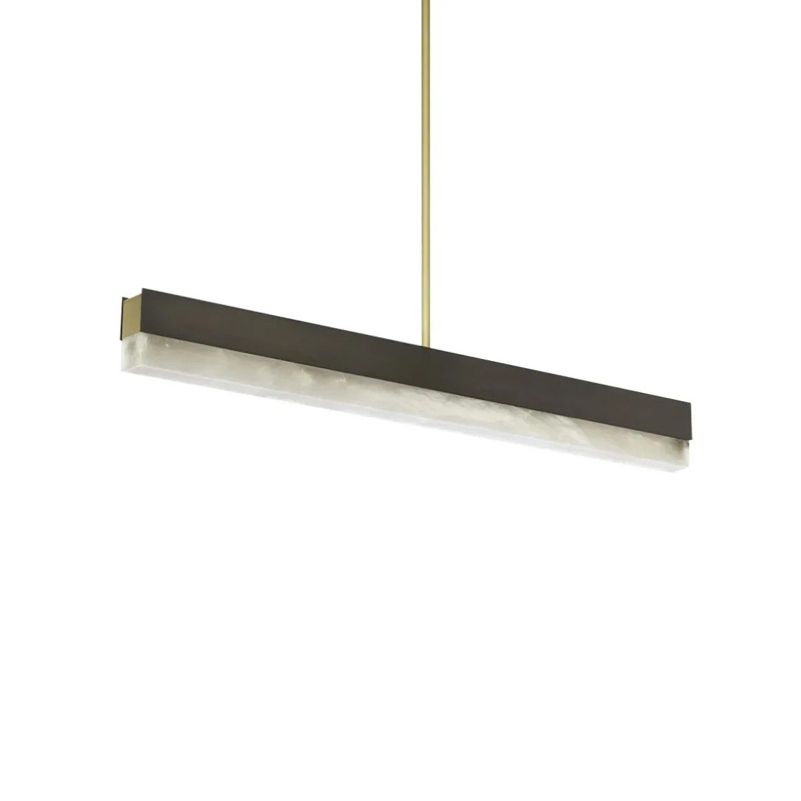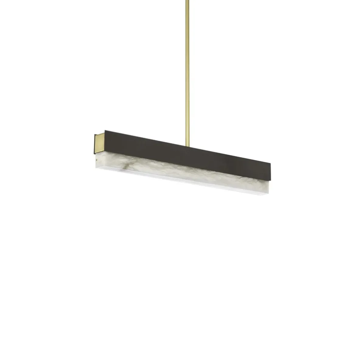 Un faisceau de lumière architectural fusionné avec des matériaux haut de gamme tels que le bronze, le laiton satiné et l’albâtre poli crée un élégant pendentif qui peut être utilisé seul ou comme composition créant des possibilités infinies pour personnaliser un espace.