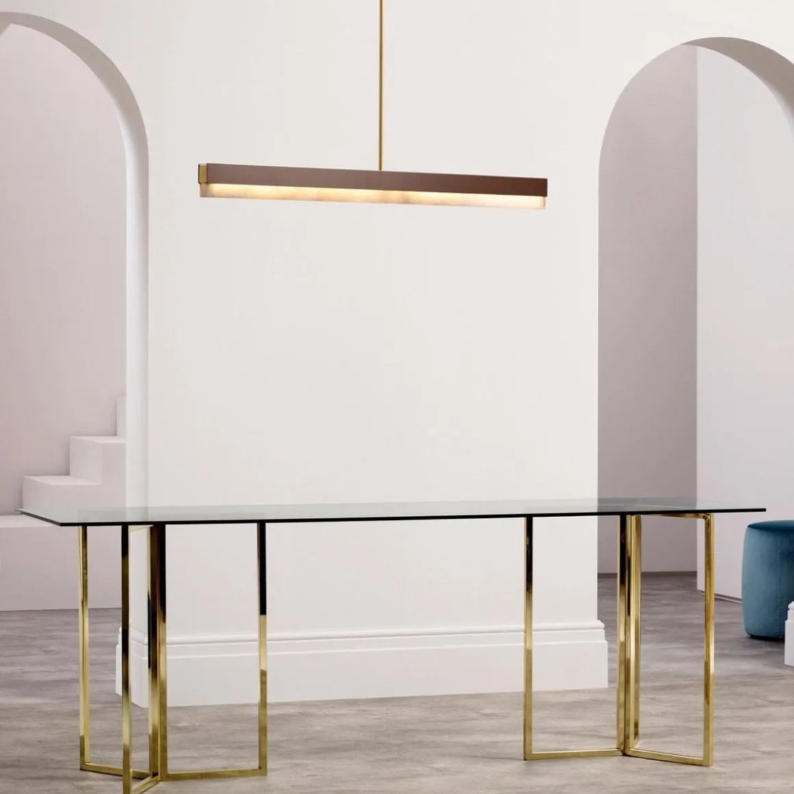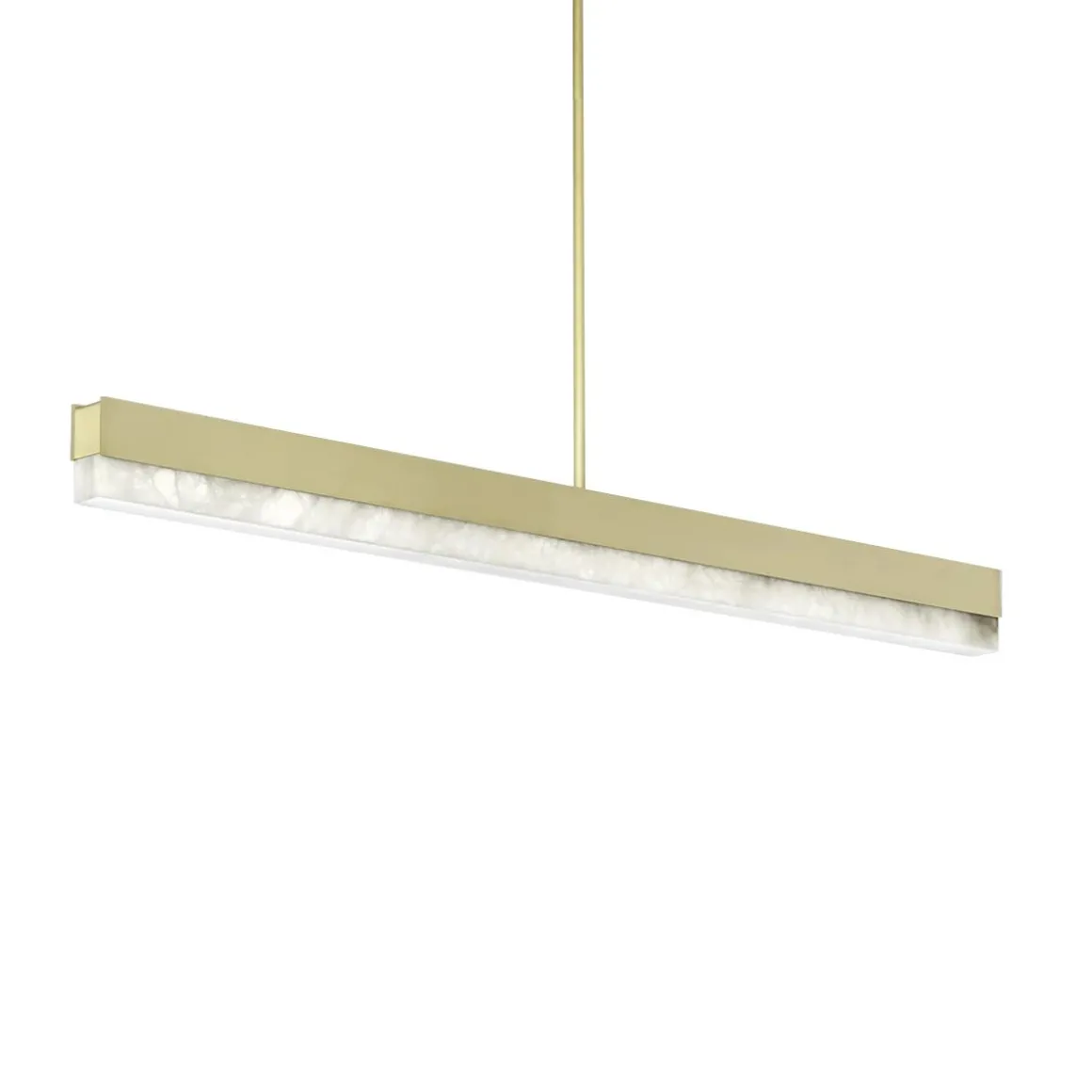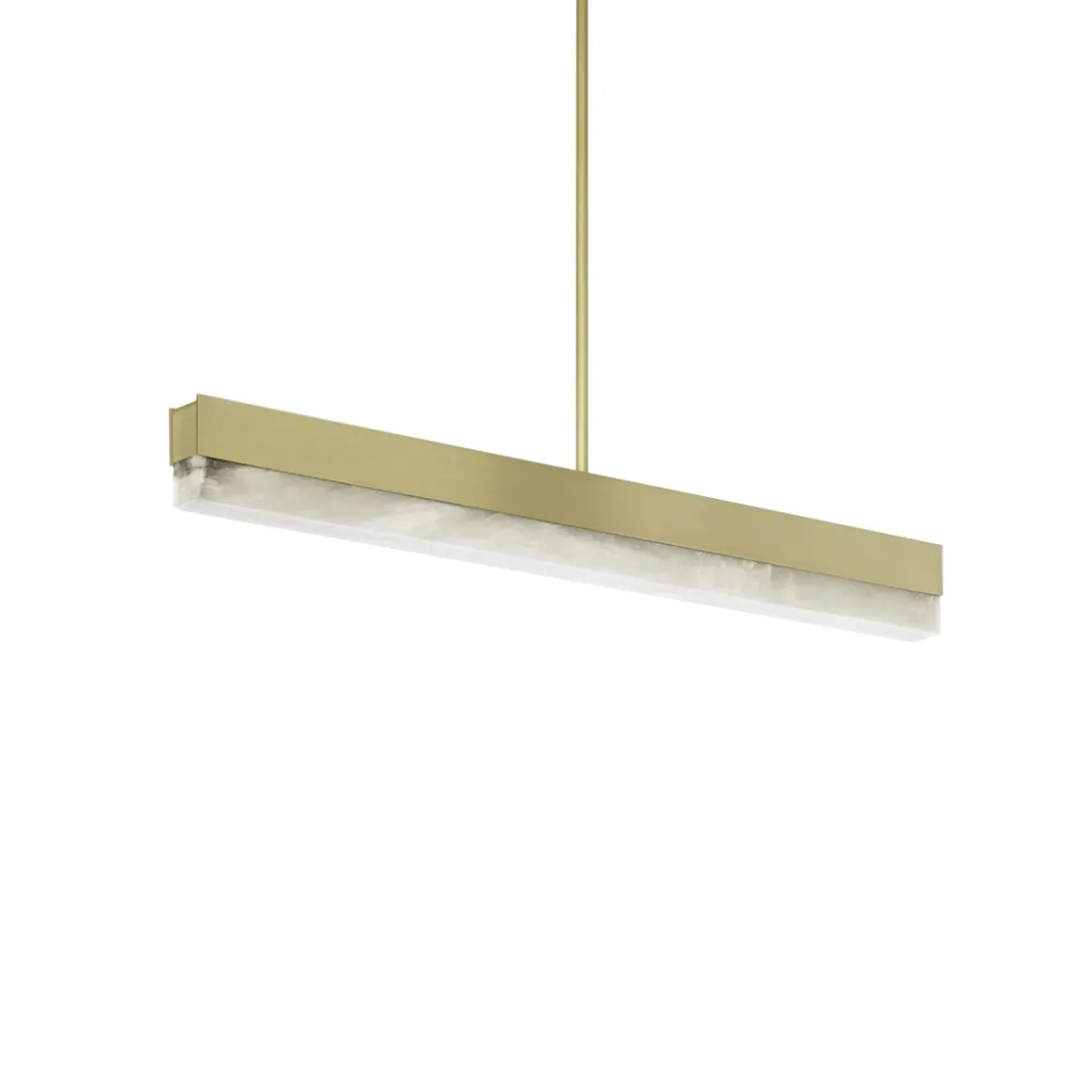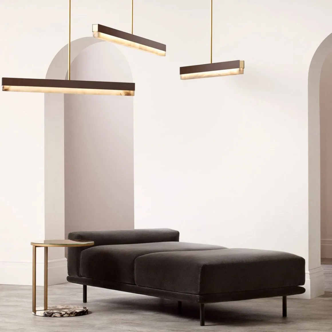 Un faisceau de lumière architectural fusionné avec des matériaux haut de gamme tels que le bronze, le laiton satiné et l’albâtre poli crée un élégant pendentif qui peut être utilisé seul ou comme composition créant des possibilités infinies pour personnaliser un espace.