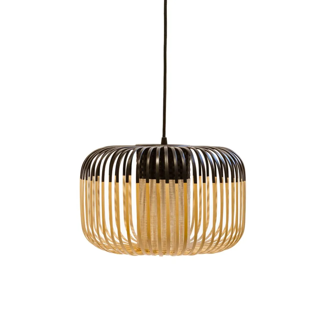 Imaginée par le designer Arik Levy, la collection de lampes Bamboo mélange avec habileté matériaux naturels et design contemporain, dans un esprit ‘nature’ très actuel. Les luminaires Bamboo se distinguent par leur abat-jour bicolore en lames de bambou, qui projette sur les murs des ombres délicates. Le diffuseur, lui aussi réalisé en bambou, possède une partie tissée dans un coloris naturel, et une partie tressée en noir, rouge ou vert. La lumière est ainsi filtrée, pour un rendu chaud et doux, idéal en guise d’éclairage d’ambiance.