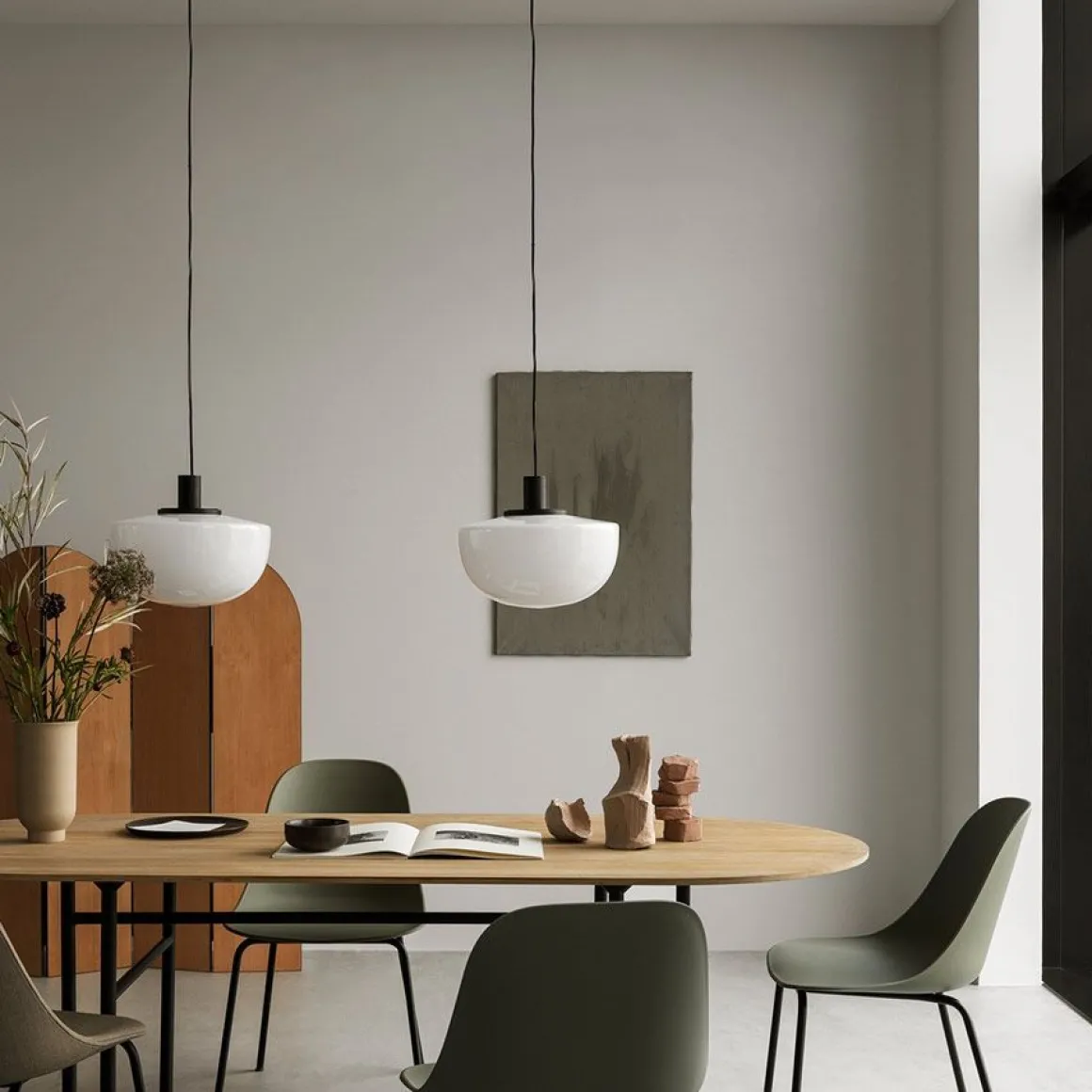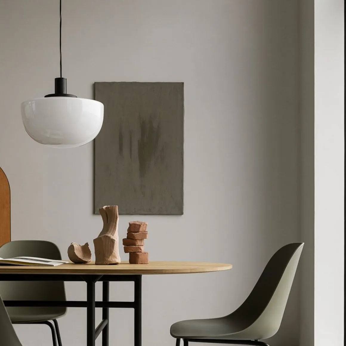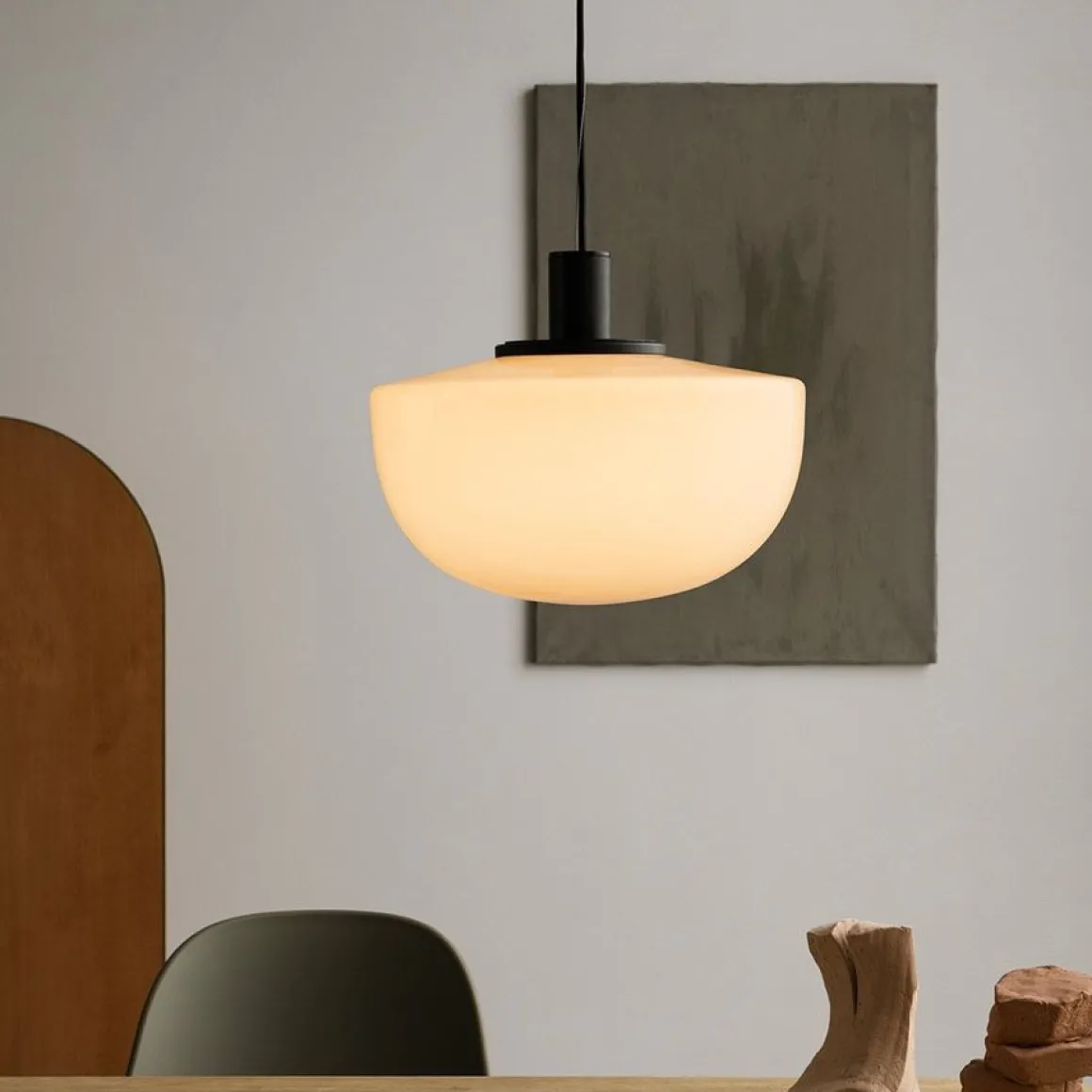 Le pendentif Bank est un pendentif semi-circulaire d’intérieur fabriqué à partir de verre opalin ou soufflé à la bouche et de raccords en aluminium enduit de poudre noire. Le verre opaque diffuse doucement la lumière à 360 degrés de n’importe quelle ampoule E26, créant une ambiance et fournissant un excellent éclairage de travail. L’association du verre opaque et du métal fin confère au produit une qualité, une tactilité et une longévité durables. Un raccord spécial avec un fil assure que l’abat-jour en verre unique peut facilement être ajusté pour accrocher uniformément.