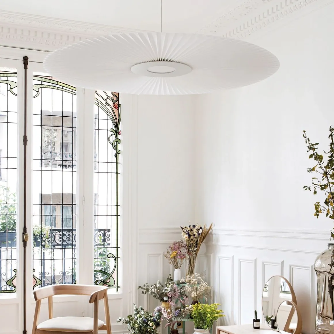Matériaux : Métal laqué mat, tissu plissé en PES ou Trevira CS