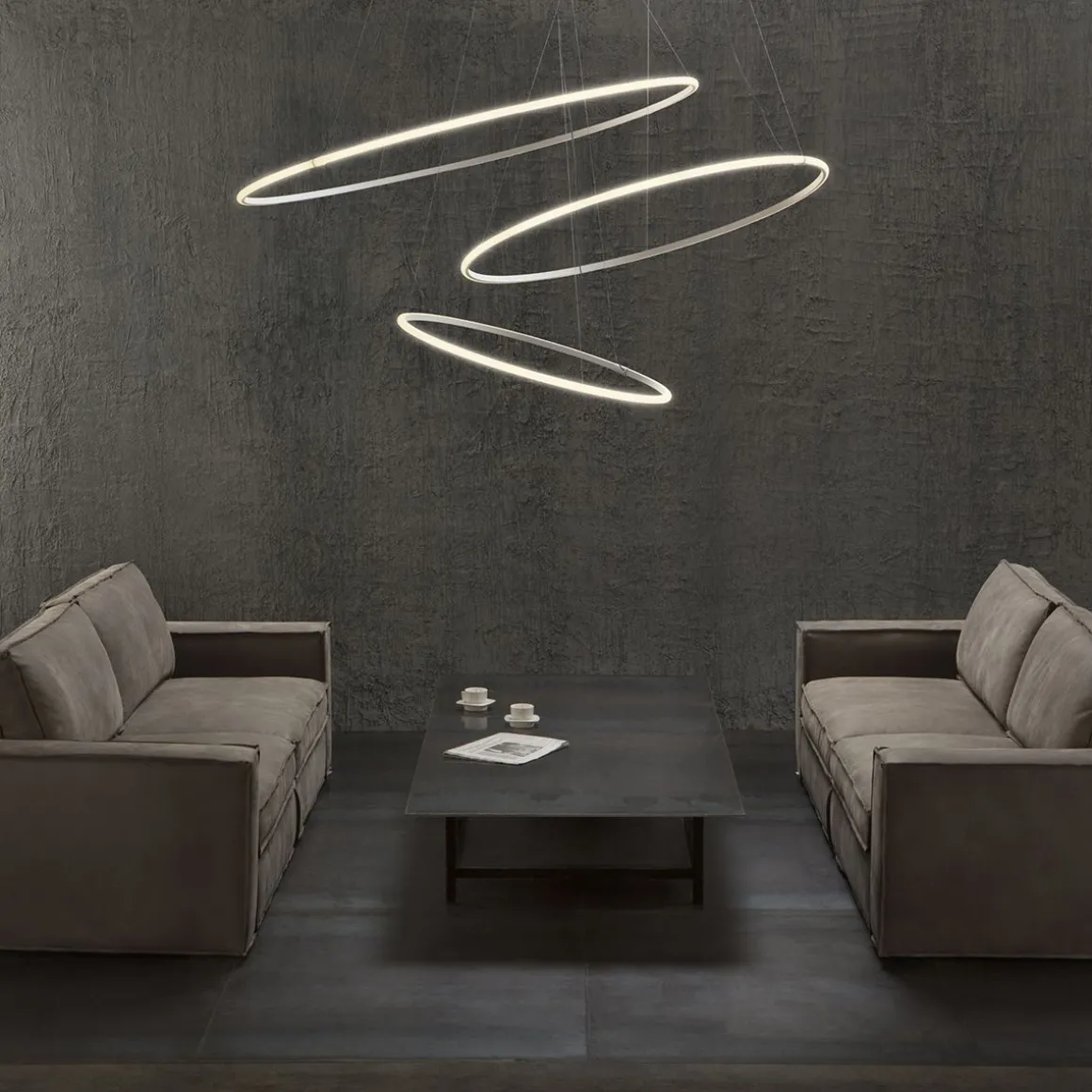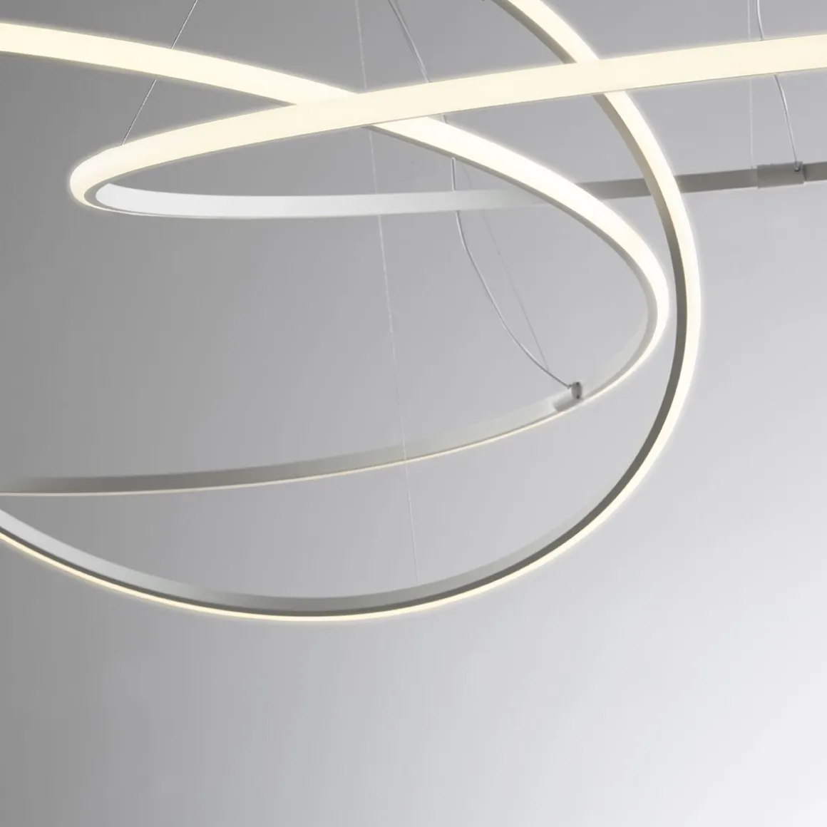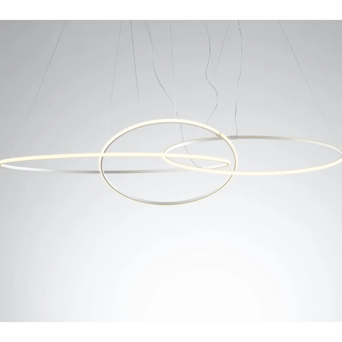 La suspension Olympic a un diffuseur au design simple et moderne, il peut donc être placé facilement dans différents espaces. La structure est en aluminium peint en blanc, alors que le diffuseur est en matière plastique adaptée pour améliorer le rendement lumineux intégré des LED. Les pendentifs peuvent être utilisés individuellement, mais ils peuvent également être croisés entre eux afin de créer des formes uniques.