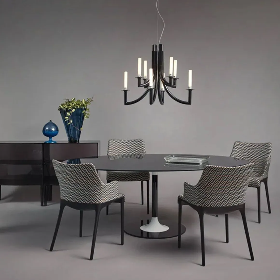 Le lustre Khan de Philippe Starck : la rencontre des styles, de l’éclectisme du XVIIIe jusqu’au minimalisme contemporain, crée un nouveau concept d’élégance et de modernité. La marque du design rencontre la technologie innovante du nouveau polycarbonate 2.0. en noir, champagne et transparent.