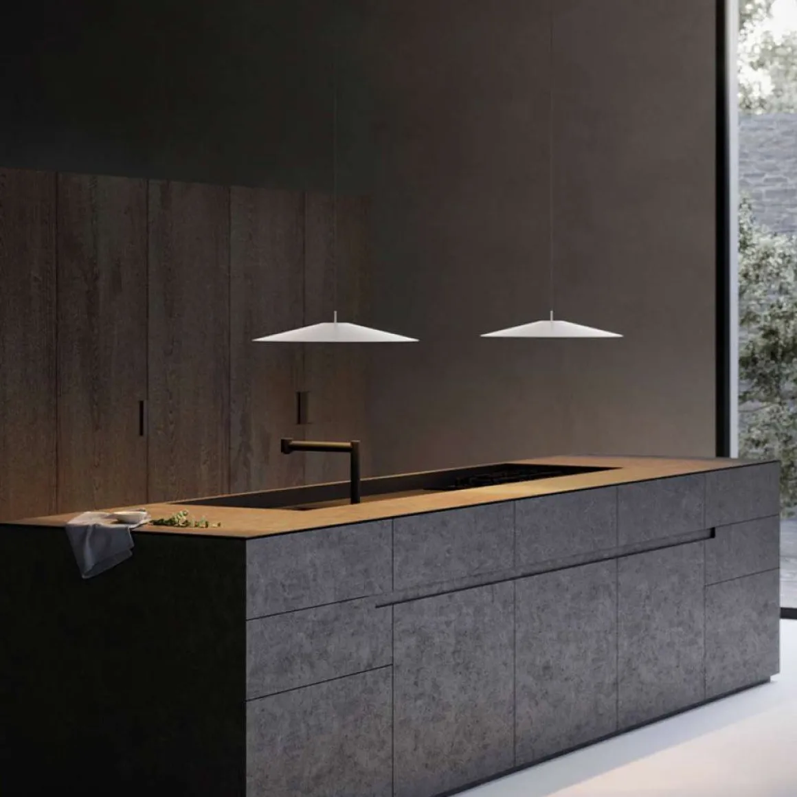 La suspension « Koiné » se caractéristiques par l’élégance et la pureté des formes, nommée pour son sens de « langage partagé » et pour ses forme qui la rendent extrêmement polyvalence. La source lumineuse est dotée d’une lentille minérale spécialement conçue. Le faisceau lumineux distribué par la lentille est homogène et distinct, un large cône de lumière aux bords bien définis.