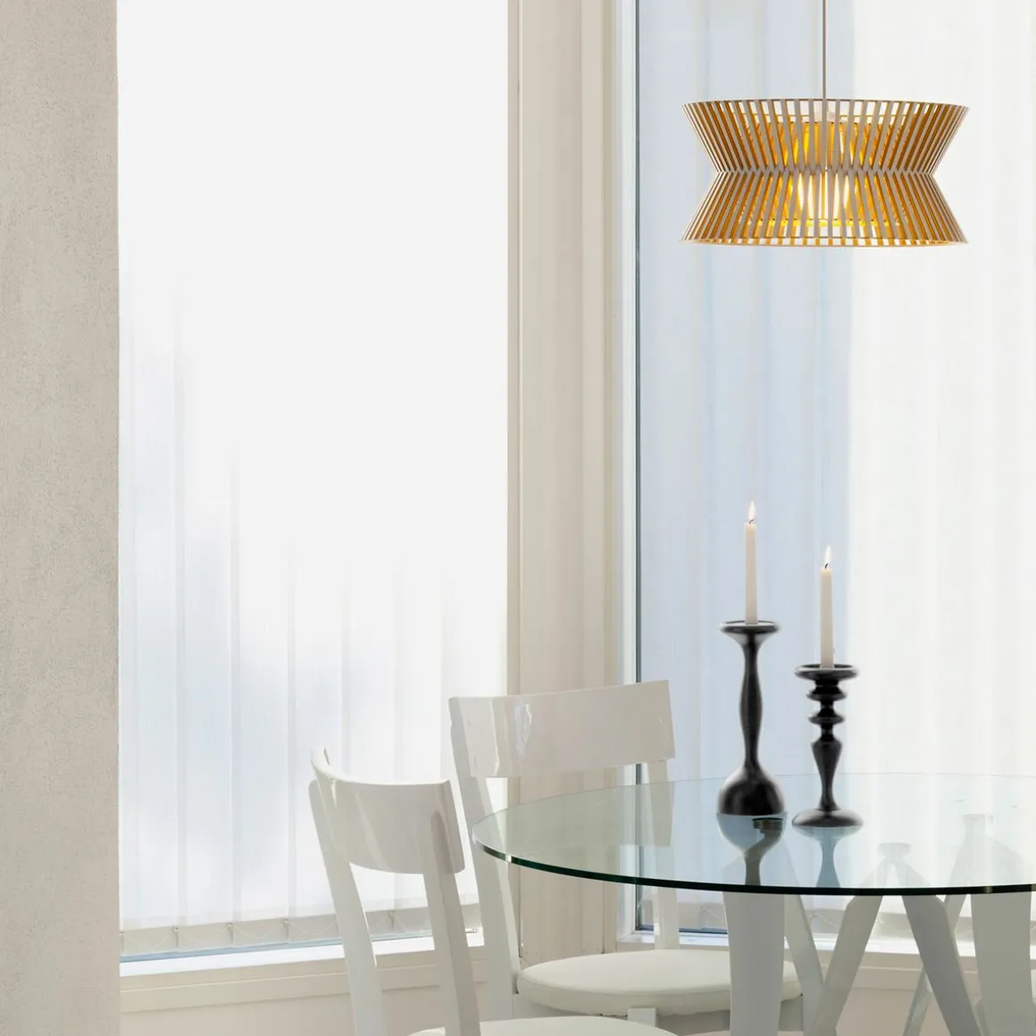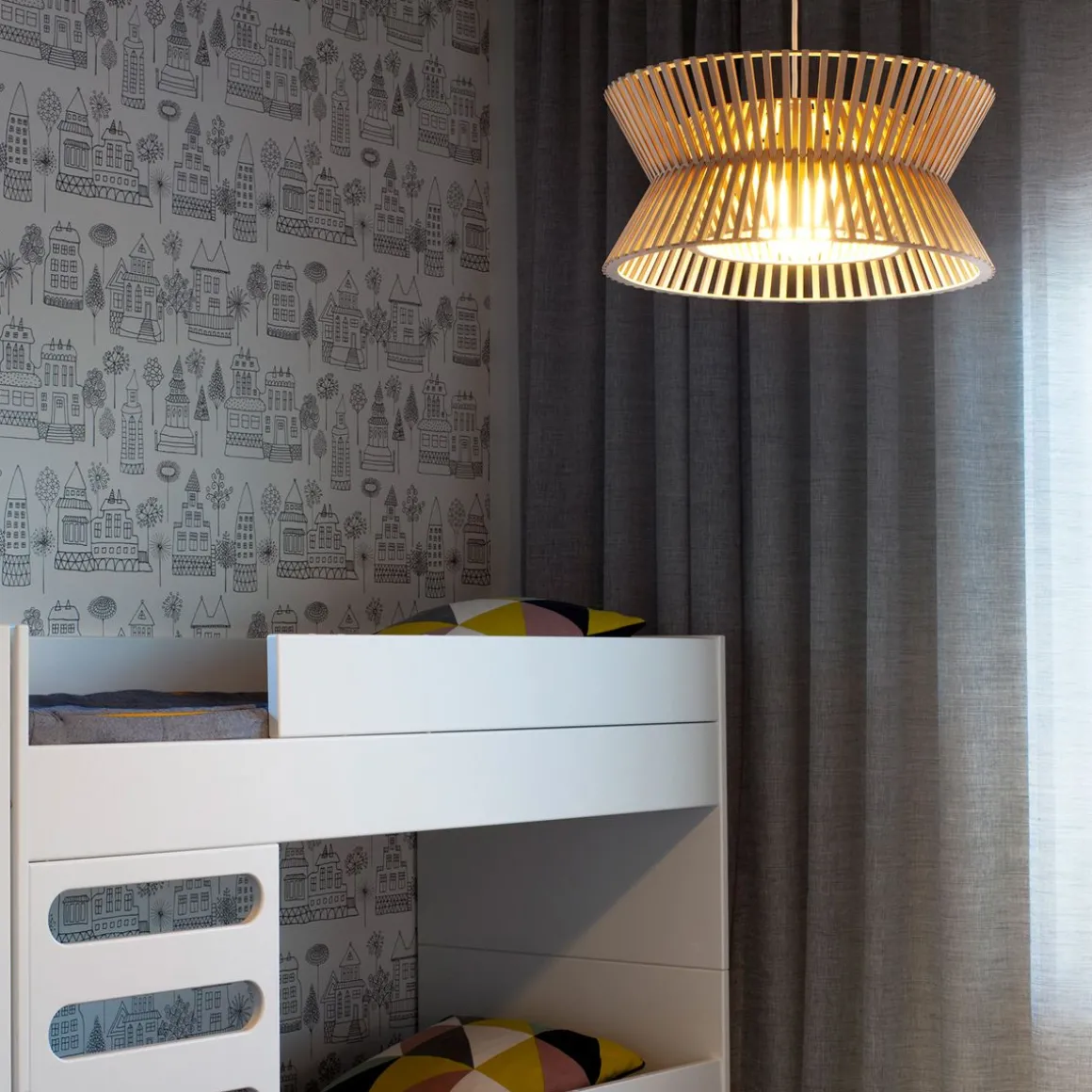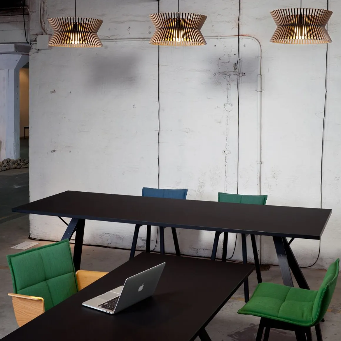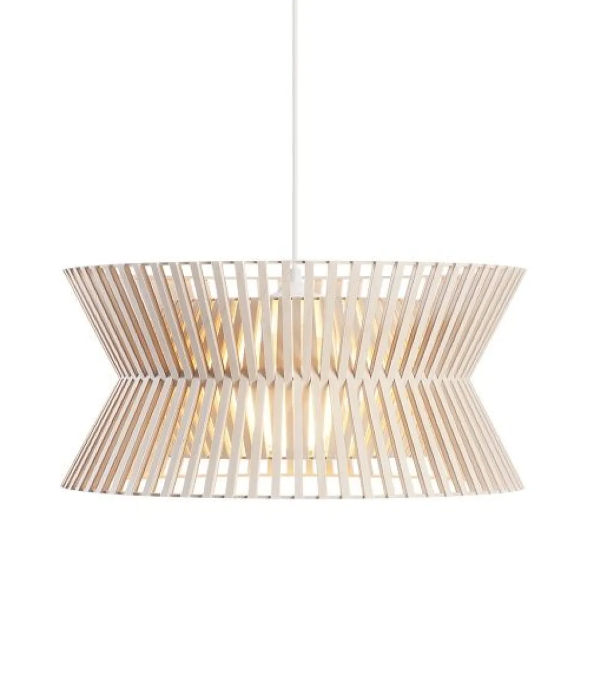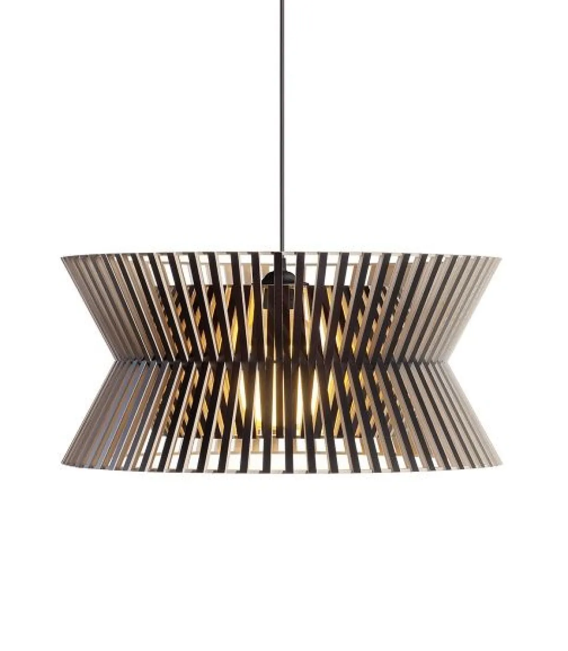 La suspension Kontro est entièrement fabriquée à la main par des artisans hautement qualifiés et certifiés de Finlande. Les lattes des abat-jours sont reliées par des anneaux réalisés en « aircraft plywood », matériau utilisé en aéronautique car hautement résistant à la chaleur. Secto Design a une démarche citoyenne sur la réduction de son empreinte écologique en s’approvisionnant localement en bois et en recyclant ses déchets comme bois de chauffage, en jouets pour les crèches ou pour les écoles de menuiserie. Avec son style design et sa forme tendance, cette suspension met en avant un esthétique raffiné et dégage une lumière douce. La suspension Kontro devient un véritable objet de décoration grâce à son look atypique qui peut s’adapter à différents intérieurs.