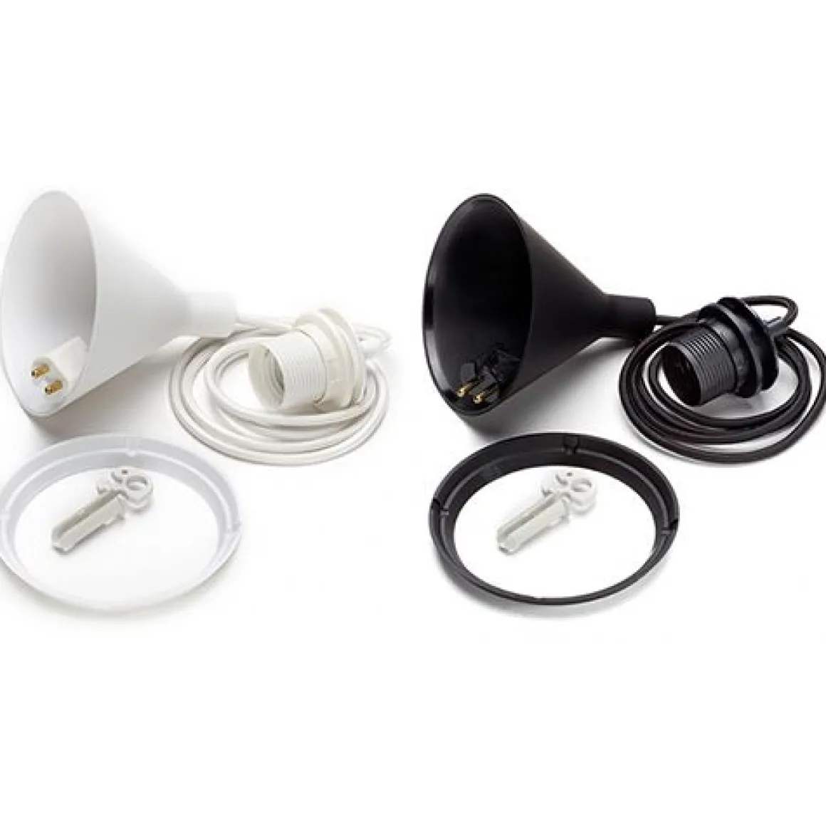 Finitions : Beige (Bouleau naturel avec câble textile blanc + tasse de plafond) ; Blanc (Stratifié blanc avec câble textile blanc + tasse de plafond) ; Noir (Laminé noir avec câble textile noir + tasse plafonnier) ou Marron (Placage en noyer avec câble textile blanc + plafonnier)