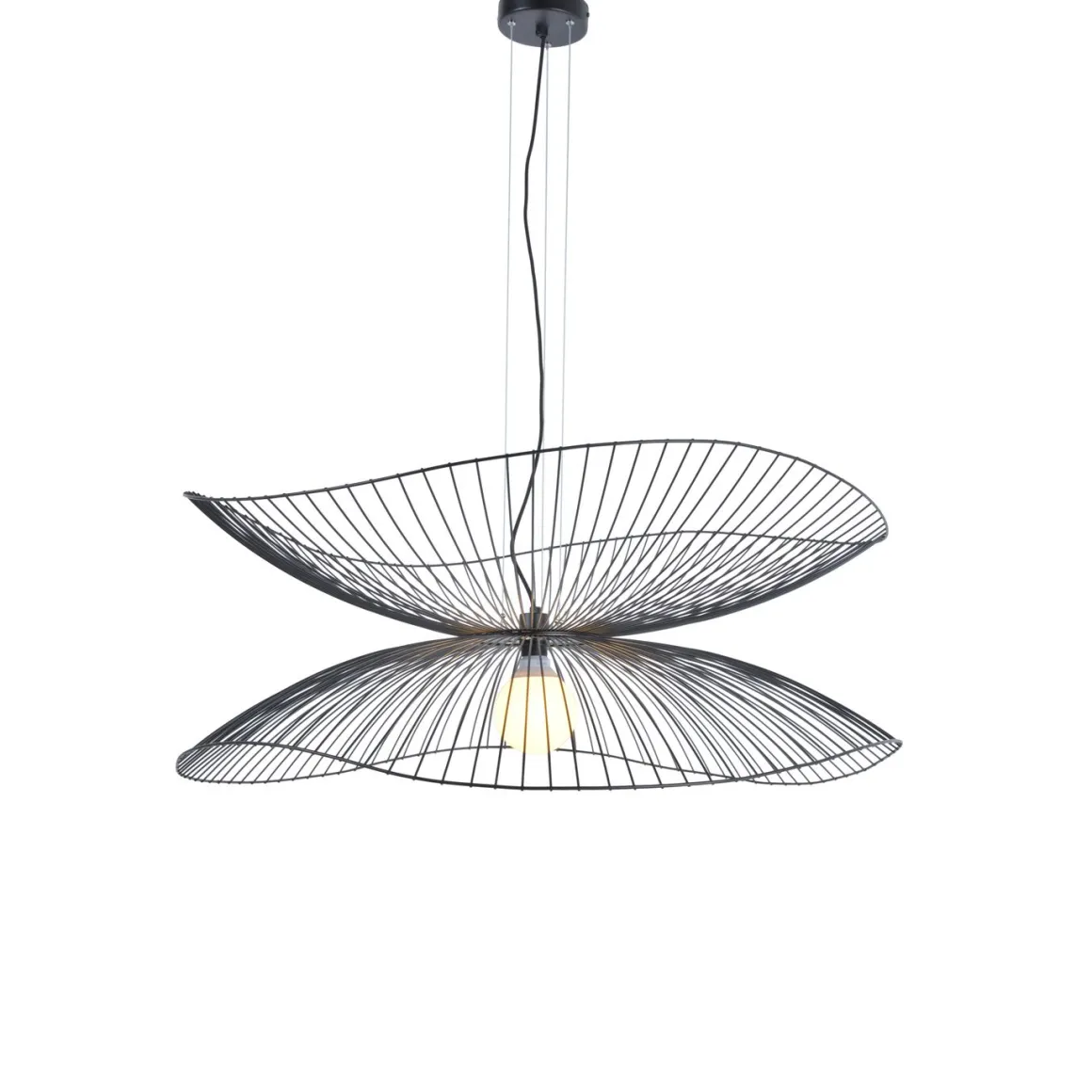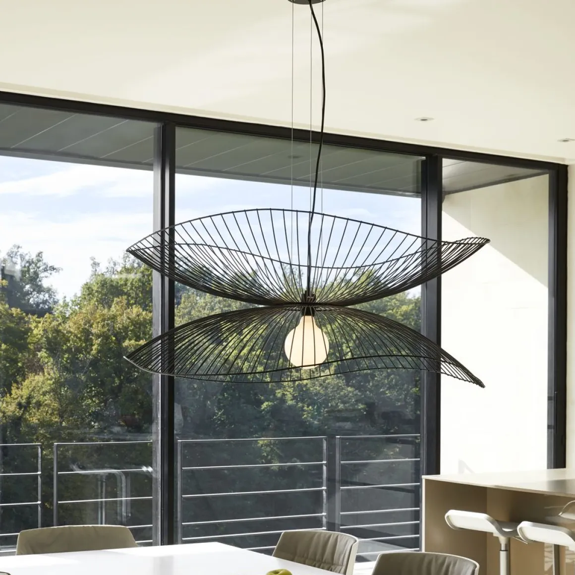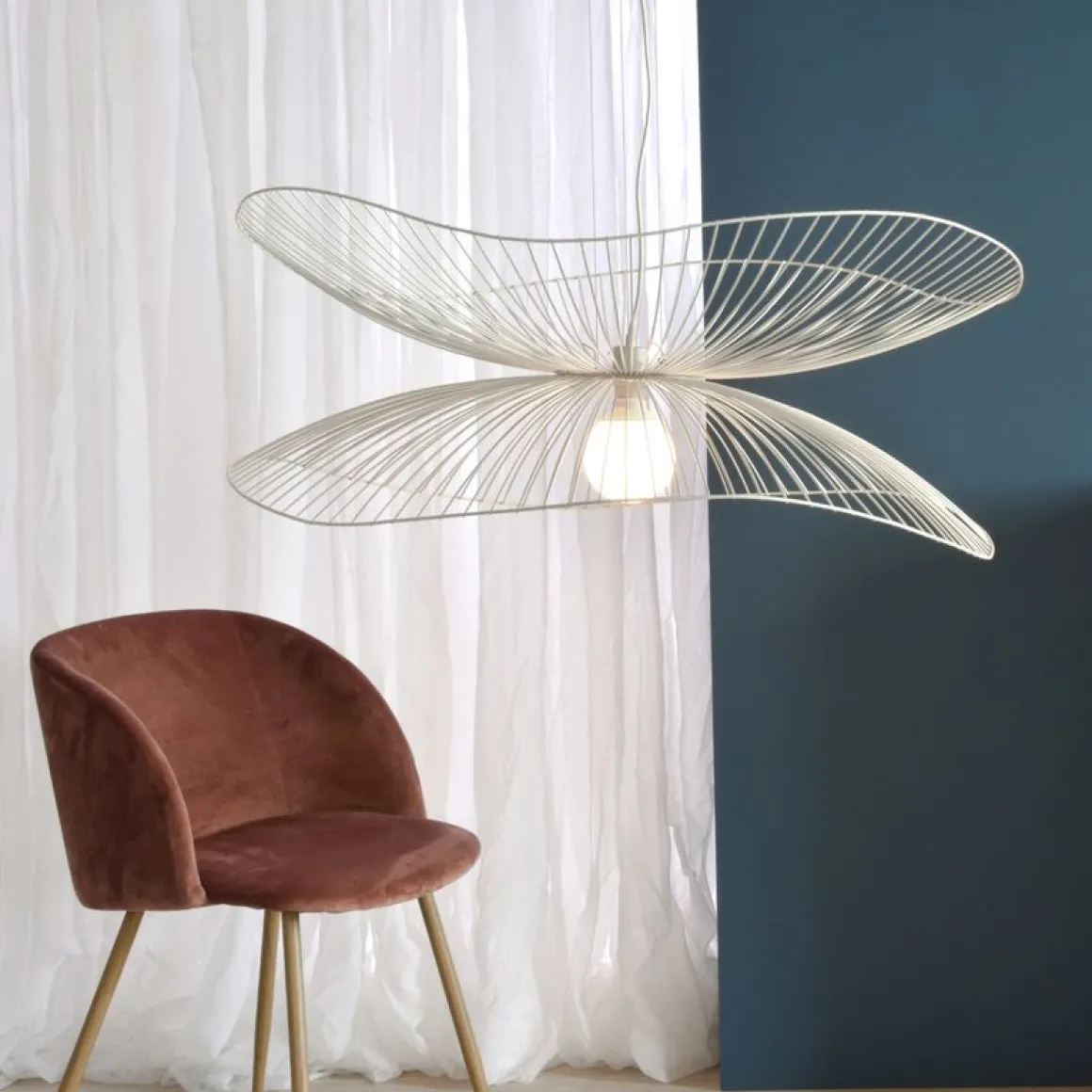 Inspirée par la nature, Libellule ressemble à la designeuse qui a passé son enfance au vert, à observer l’immensité des éléments qui l’entoure. Prête à déployer ses ailes dans un intérieur épuré et design, cette collection de suspensions se distingue par ses courbes fines de métal dans des coloris noir, blanc rose Cooper, taupe ou champagne, relié au plafond par un fil de nylon assorti. La lumière est gracieuse, légère et voluptueuse créant une atmosphère intemporelle dans une cuisine, une salle à manger ou un salon. Papillon déploie ses ailes dans un intérieur épuré ou aux envolées design inspirées