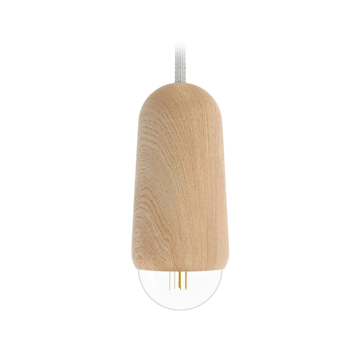 Ronde, longue et tendrement lumineuse, la suspension Luce est idéale pour créer une lueur douce et réconfortante au-dessus d’une assise, d’une table ou d’une console. Avec son ampoule ronde logée dans un soble en bois, son design à la fois ludique et organique, Luce porte haut l’art de diffuser la lumière. Sa forme attendrissante, organique, n’est pas sans rappeler les ravissants coquetiers en bois de notre enfance… Ses lignes simples sont façonnées en bois de chêne massif. Elle se suspend au bout d’un câble en tissus blanc, seule ou avec ses coeurs cadettes : Luce S (socle H 14.5 cm) , Luce S long (socle H 18.5 cm), Luce M (socle H 20.5 cm). Toutes les trois attendrissantes… Luce est une création du designer Michael Koska.