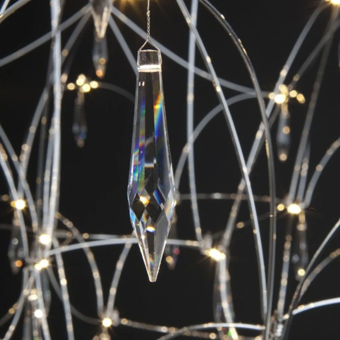 La suspension Mira apporte une style original mais tout en légèreté à votre décoration. La structure en métal privilégie la transparence, et les cristaux de Swarovski permettent à la lumière d’y scintiller discrètement. Attention aux grands formats: sa hauteur est égale à son diamètre, et pour qu’elle soit équilibrée, le diamètre 80cm nécessite une hauteur sous plafond de minimum 320cm (285cm si elle est positionnée au-dessus d’une table).