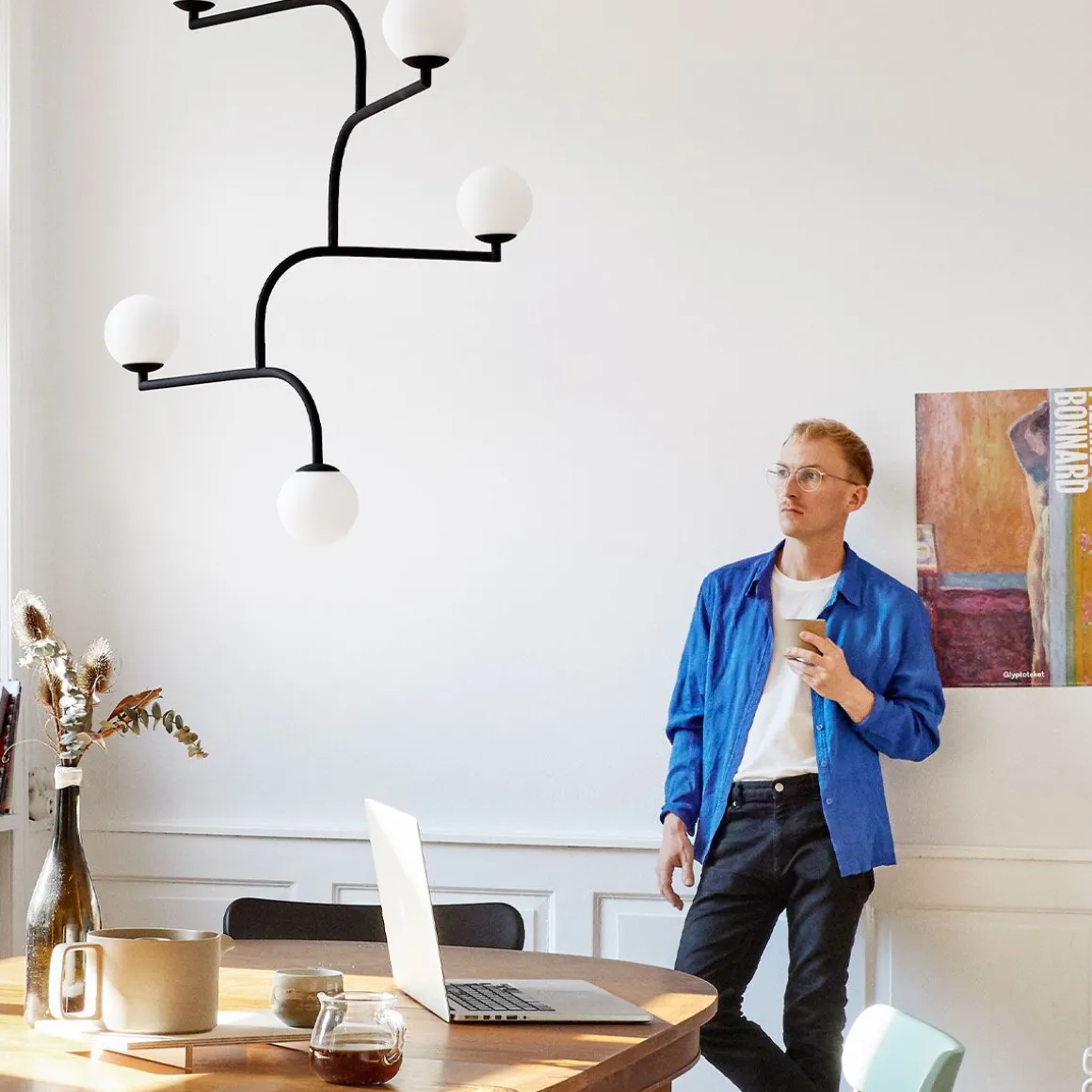 «Donnez-moi une lampe qui aura fière allure sur un loft de New York – avec ces mots, j’ai commencé à travailler avec la série Mobil pour Pholc.» – Monika Mulder. Applique mural en métal et verre opale de la marque Pholc.