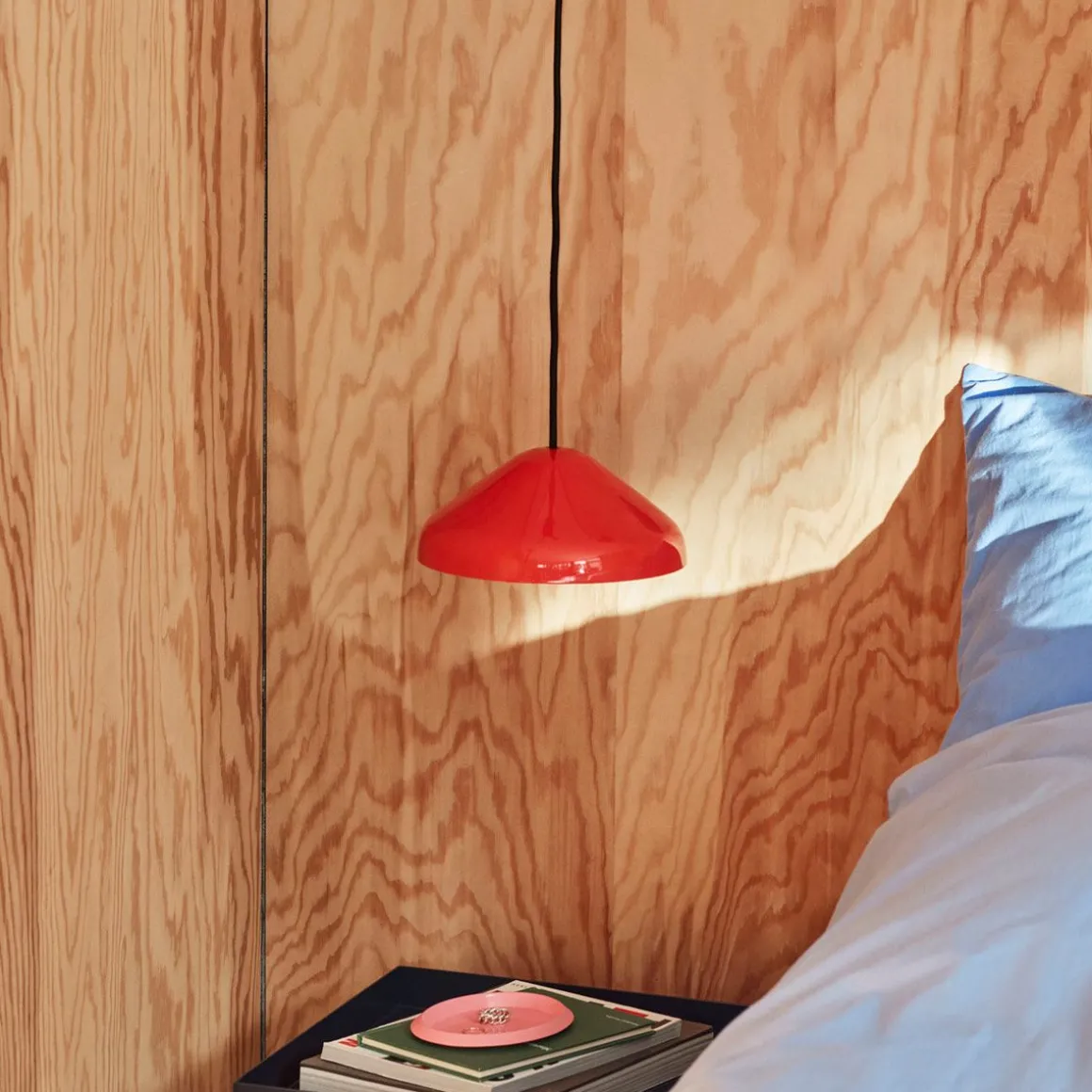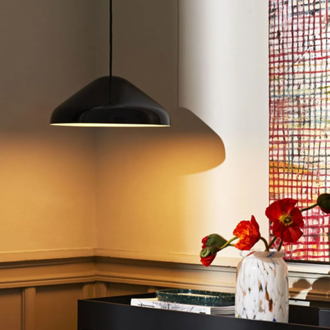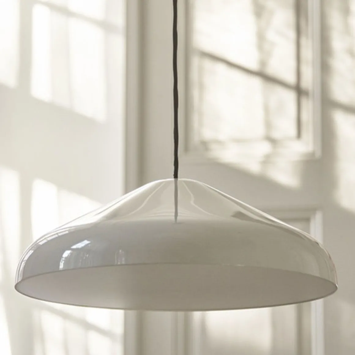 Matériaux : abat-jour en acier pressé avec un brillant humide, finition par pulvérisation, opalescent moulé par injection, diffuseur en acrylique (PMMA), câble en tissu tressé avec une isolation en silicone