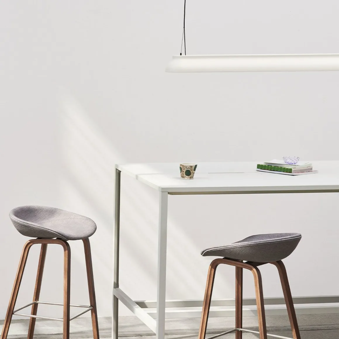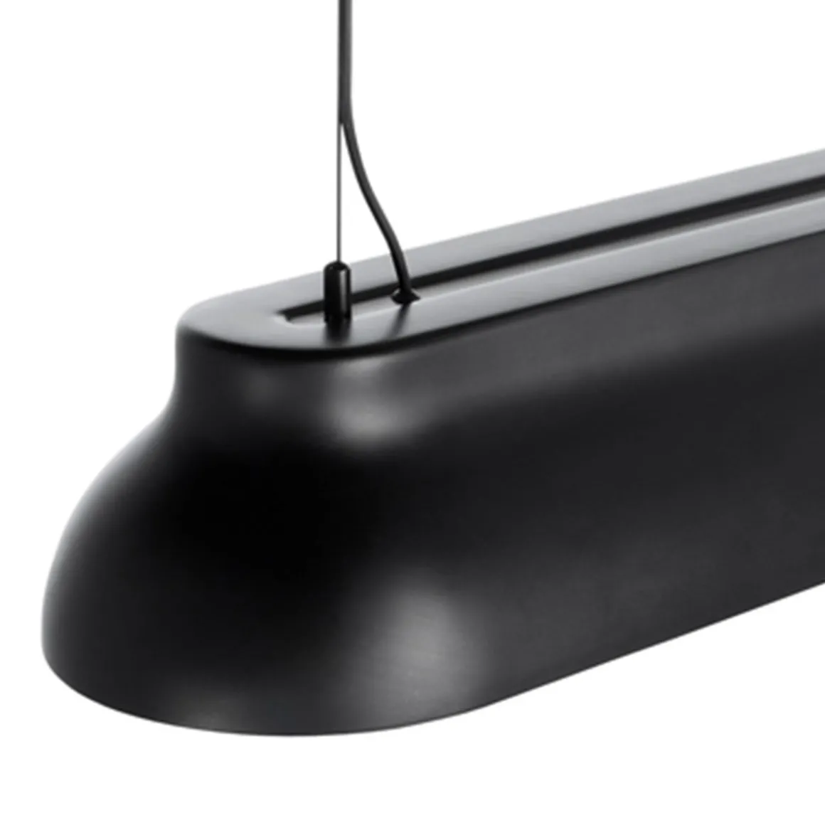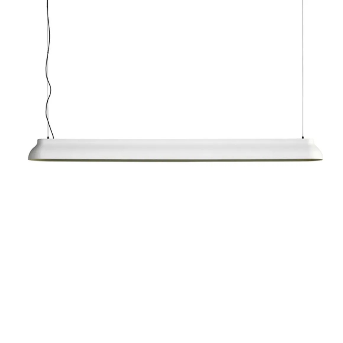 Suspension PC Linéaire de Hay. PC Linear de Pierre Charpin est le dernier membre à rejoindre la famille des lampes PC. Le nouveau design partage le même profil simple et élégant qui est présent dans le reste de la famille. L’abat-jour du PC Linear est pressé à partir d’un seul composant en aluminium avec une finition pulvérisée à l’eau. La conception linéaire est idéale pour suspendre au-dessus des tables de réunion ou de salle à manger, ainsi que pour éclairer les étagères d’exposition dans les espaces commerciaux. Le PC Linear est disponible en noir ou en blanc et convient à la fois pour un usage professionnel et domestique.