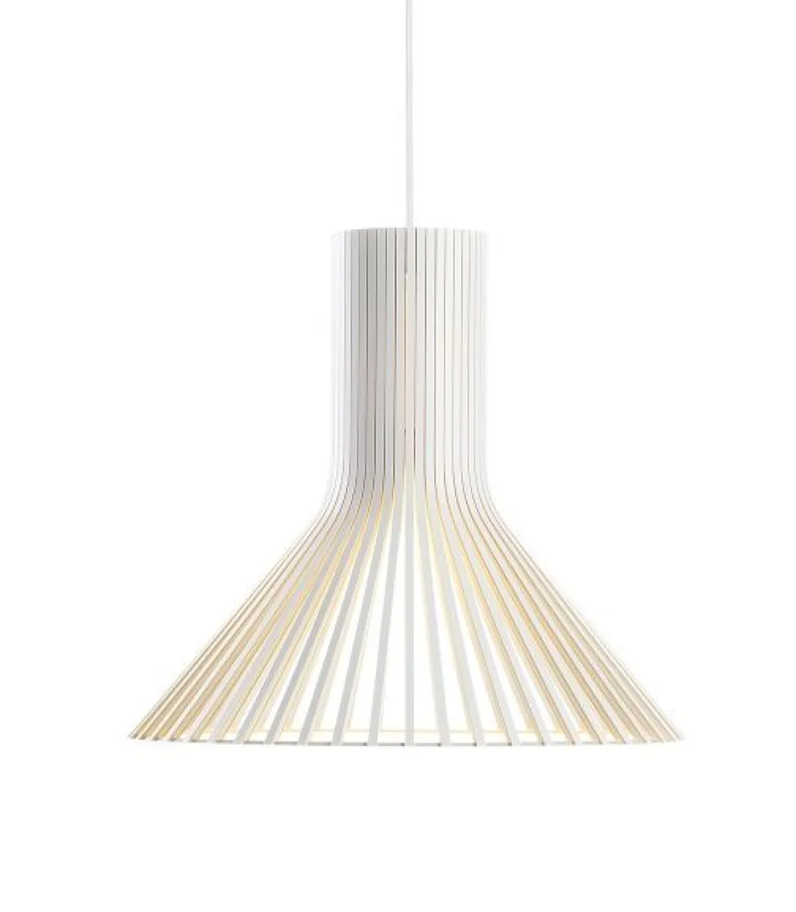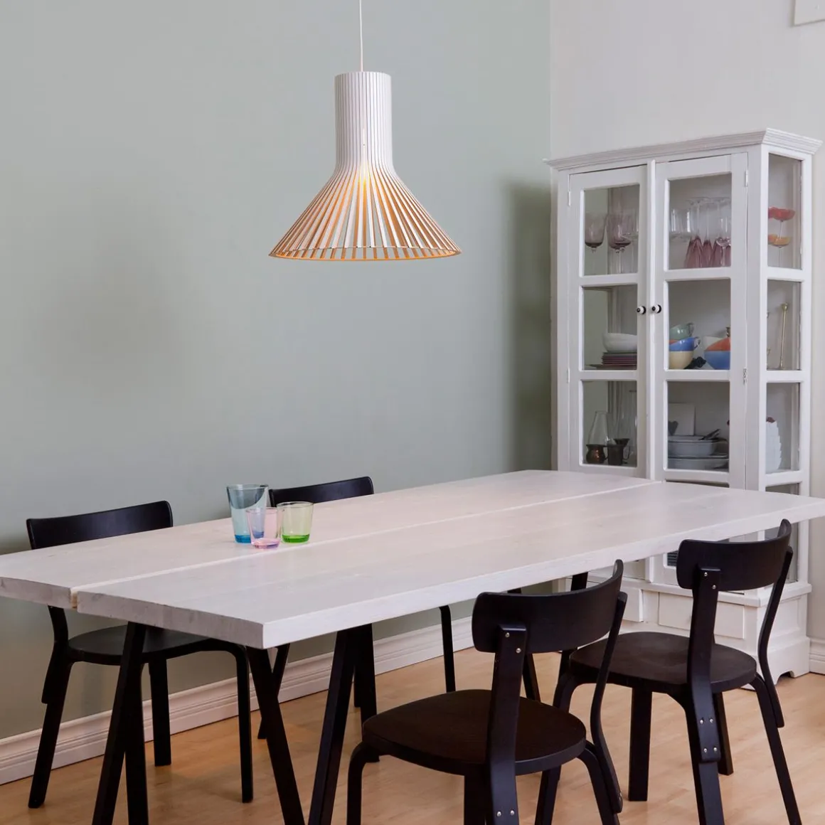 La suspension Puncto, avec son design épuré, est entièrement fabriquée à la main par des artisans hautement qualifiés et certifiés de Finlande. Les lattes des abat-jours sont reliées par des anneaux réalisés en « aircraft plywood », matériau utilisé en aéronautique car hautement résistant à la chaleur. Secto Design a une démarche citoyenne sur la réduction de son empreinte écologique en s’approvisionnant localement en bois et en recyclant ses déchets comme bois de chauffage, en jouets pour les crèches ou pour les écoles de menuiserie. Grâce à sa forme évasée, cette lampe intemporelle diffuse de la lumière douce et naturelle. Sa silhouette sobre et élégante habille chaleureusement votre intérieur pour un effet très design.