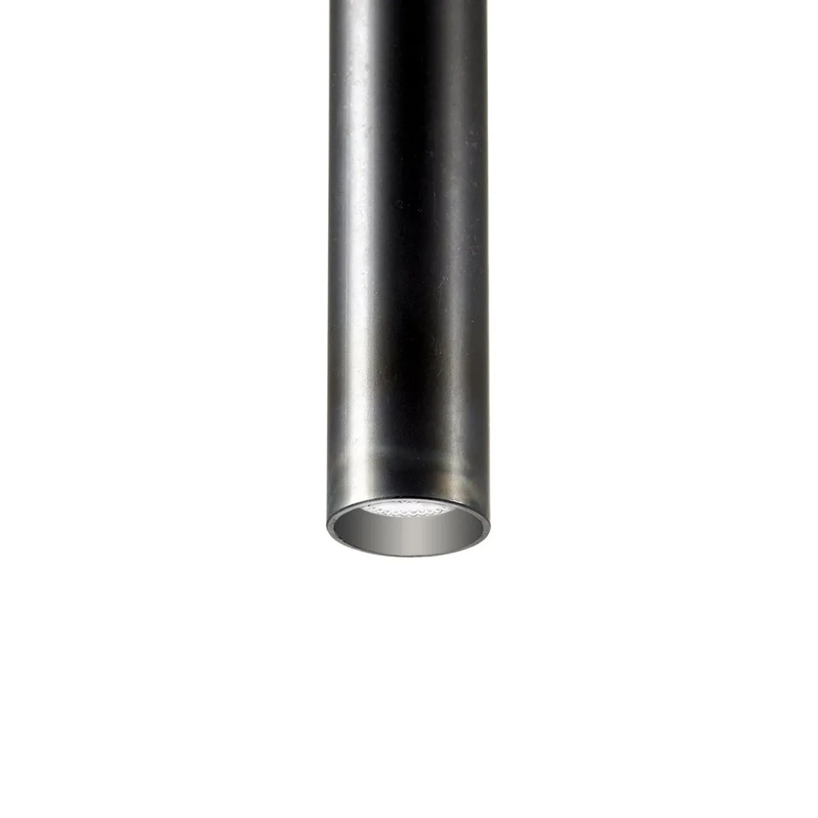 Le Sofisticato NR. 09 et NR. 10 comportent un module LED fixe à l’intérieur d’un tube en acier d’une longueur de 40 ou 70 cm et d’un diamètre de seulement 3,5 cm. L’acier est chauffé et poli manuellement pour obtenir l’effet bleu distinctif de la ligne Sofisticato.
