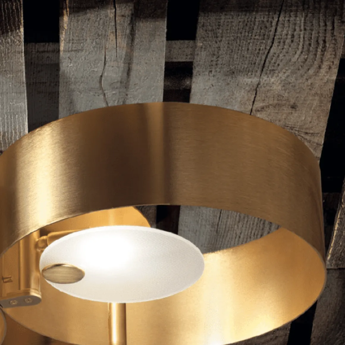 Sound est une collection de lampes en métal avec diffuseur en verre décoré. Disponible en 2 finitions différentes, or brossé et bicolore noir mat / laiton brossé.