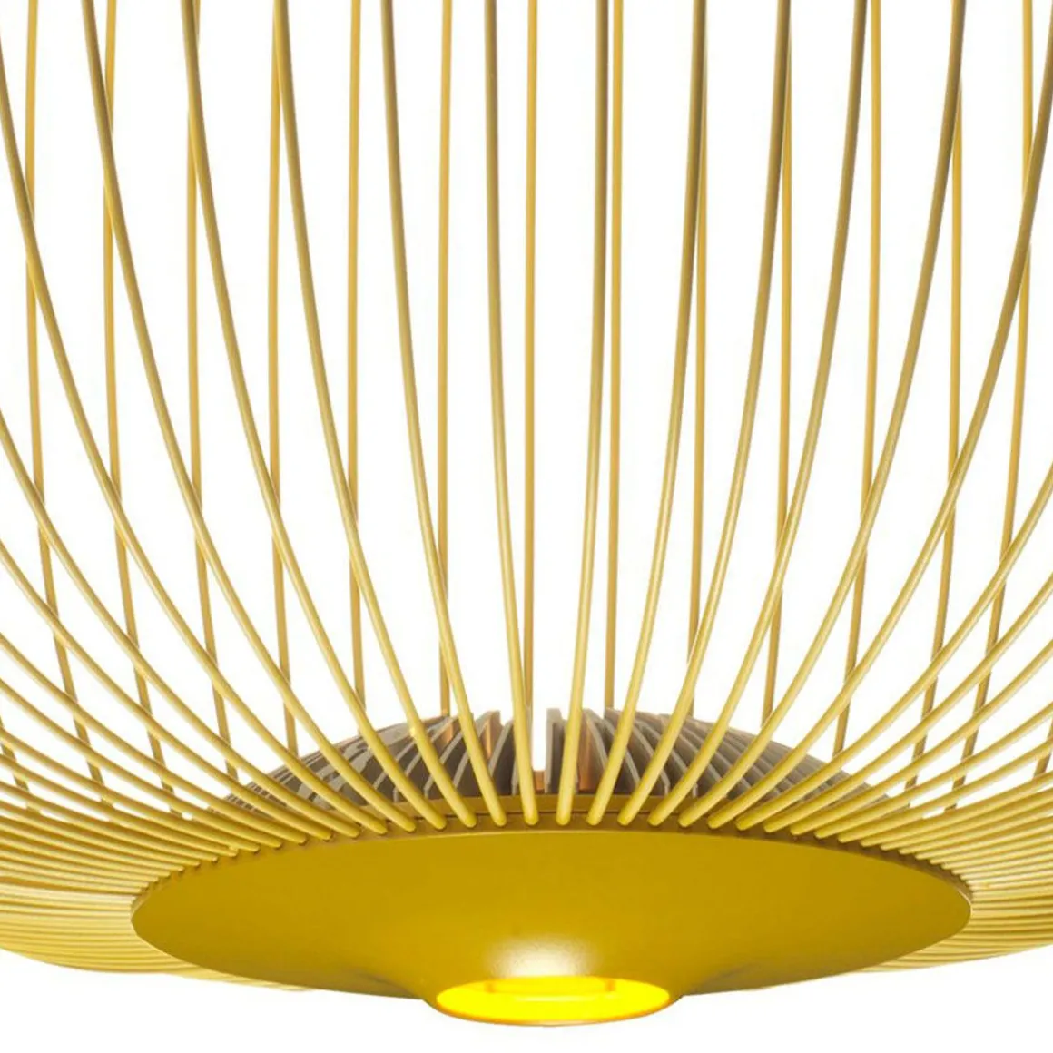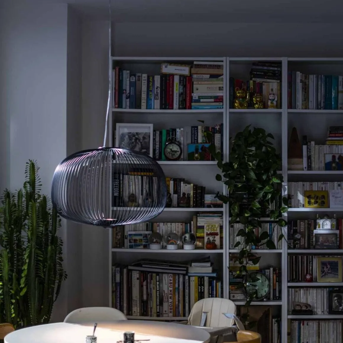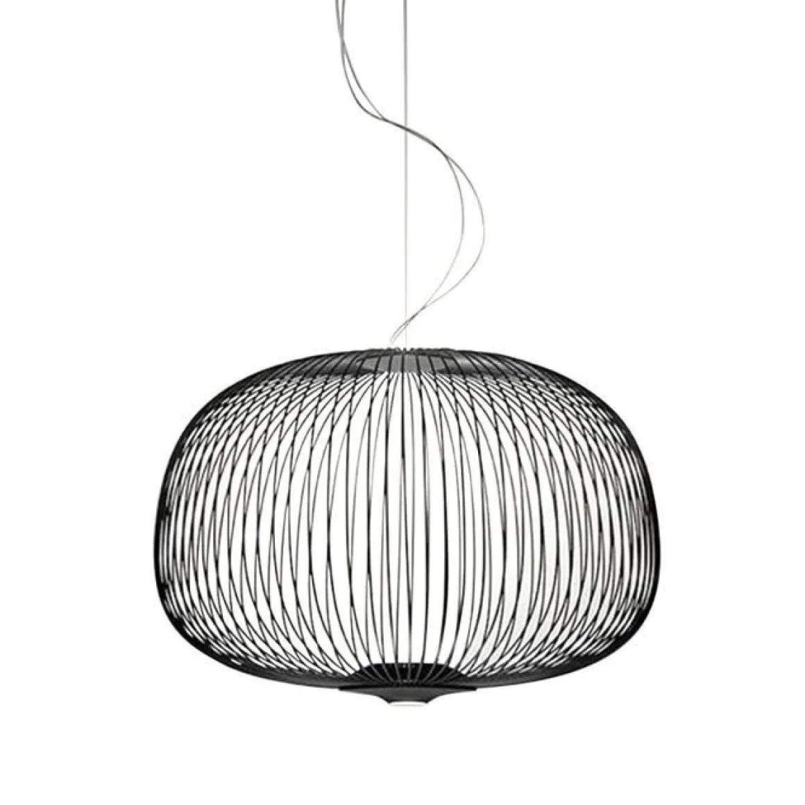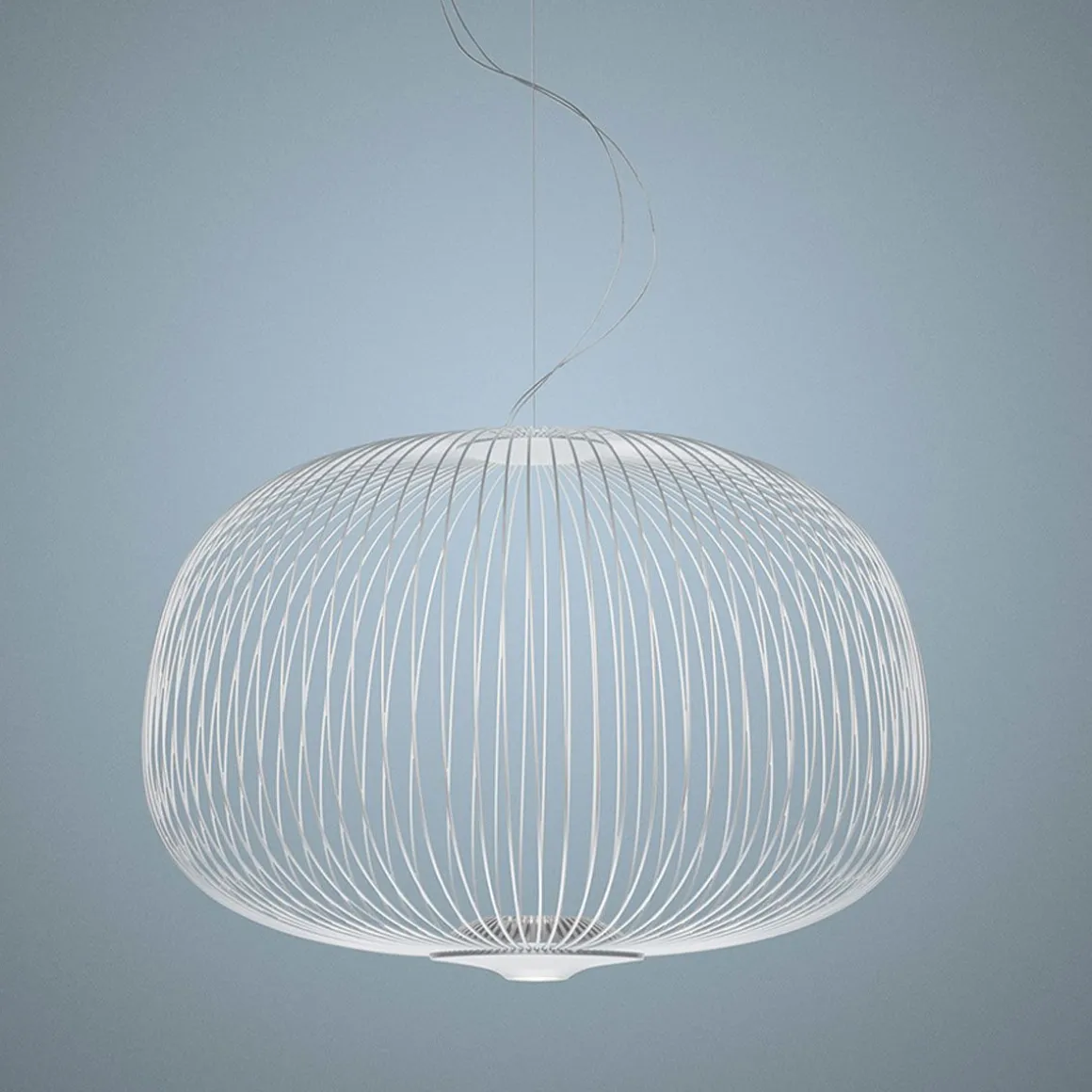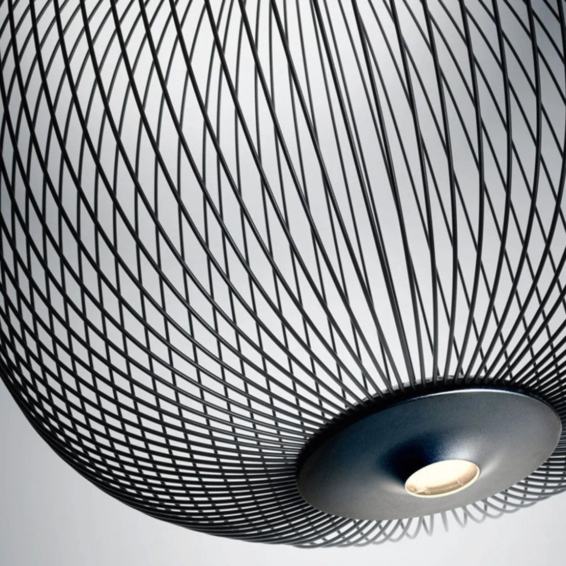 Spokes 3 exprime une sensation de légèreté et de mouvement. Comme par magie, la lumière filtre de l’intérieur à travers une structure grillagée géométrique, projetant un kaléidoscope de vides et de pleins. La suspension Spokes est adaptée aussi bien aux espaces domestiques que publics, et notamment pour personnaliser les grands volumes, grâce à la possibilité de réaliser des compositions multiples.