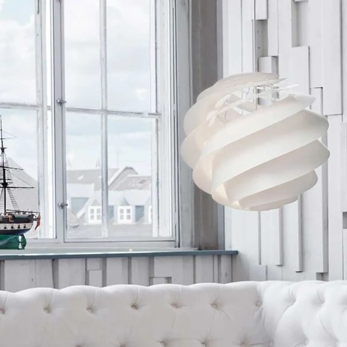 Øivind Slaatto s’est inspiré de la série SWIRL de la nature et des principes mathématiques de base. Il voulait trouver un moyen d’intégrer la construction détaillée de la coquille d’un escargot ainsi que sa fascination pour les fractales. Il voulait que le design et le savoir-faire de LE KLINT soient évidents quand on regarde la lampe. La transparence, la forme et les panneaux en spirale de SWIRL font parfaitement référence au style unique et à la perfection de LE KLINT qui est toujours approprié et agréable dans n’importe quelle pièce.