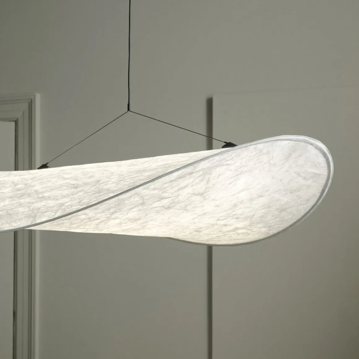 S’étirant sur plus d’un mètre de long, la suspension Tense apparaît comme un nuage doux qui a flotté. Une construction vraiment moderne, son diffuseur en Tyvek doux représente un matériau à la fois durable et doux – tout en étant 100% recyclable. La flexibilité de ce diffuseur en forme de papier permet à son cadre mince d’accentuer les qualités nuageuses de la suspension Tense. Fini avec une source de lumière LED mince, tous les composants s’insèrent dans une boîte mince pour faciliter le transport. Une approche vraiment moderne de l’éclairage.