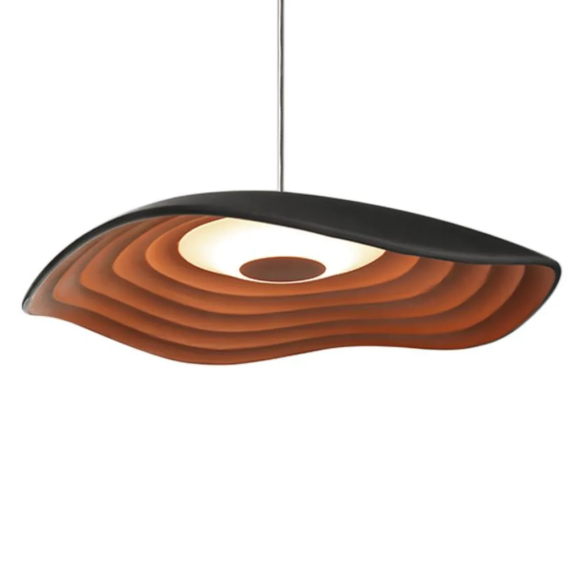 Le concept de cette lampe est basé sur une tête lisse qui dessine une forme ondulée sur son périmètre, le contraste clair avec la partie intérieure de la lampe, qui nous rappelle les oscillations douces et petites que les courants marins forment sur la côte méditerranéenne.
