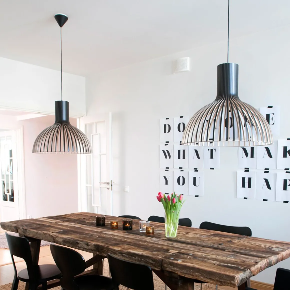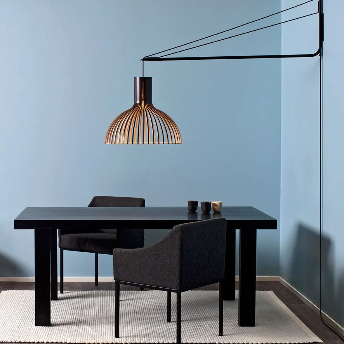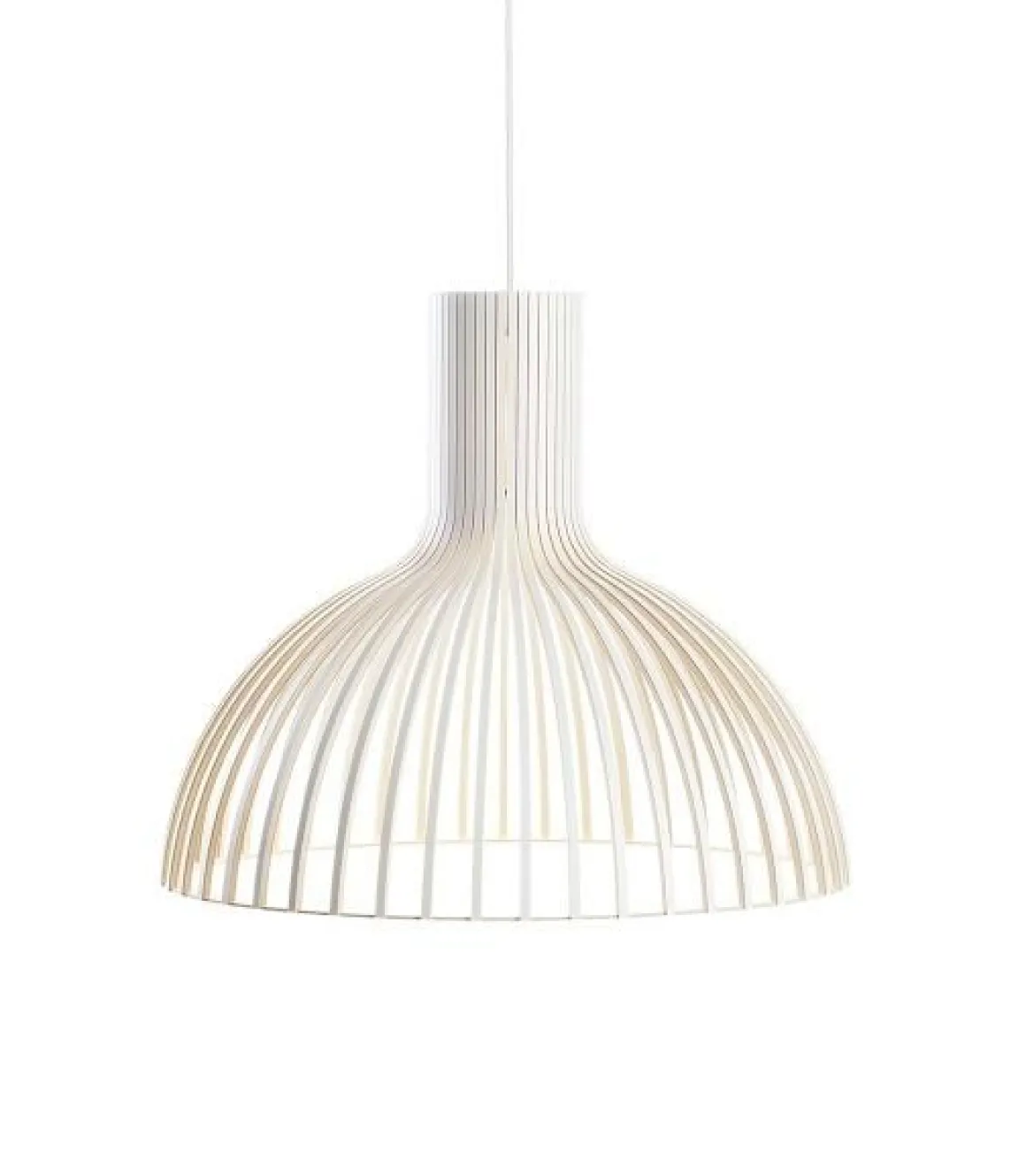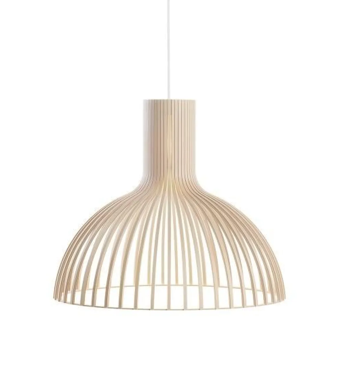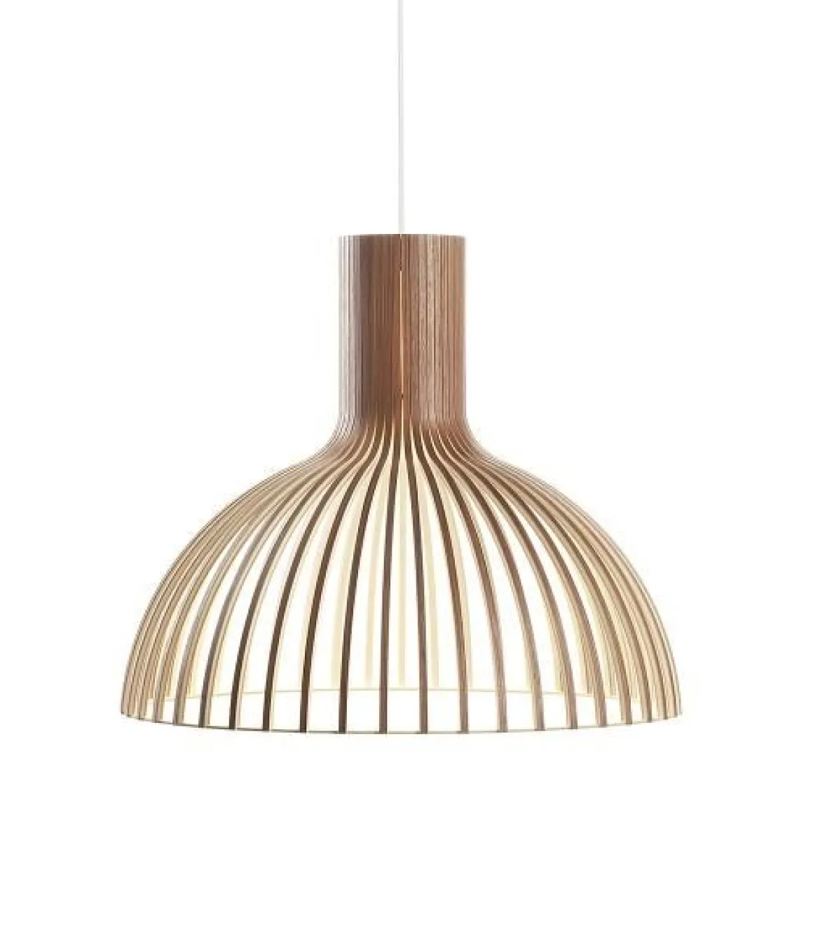 La suspension Victo, avec sa forme arrondie, est entièrement fabriqués à la main par des artisans hautement qualifiés certifiée de Finlande. Les lattes des abat-jour sont reliées par des anneaux réalisés en » aircraft plywood « , matériau utilisé en aéronautique car hautement résistant à la chaleur. Secto Design a une démarche citoyenne sur la réduction de son empreinte écologique en s’approvisionnant localement en bois et en recyclant ses déchets comme bois de chauffage, en jouets pour les crèches ou pour les écoles de menuiserie. Avec son style design et sa forme arrondie, cette suspension habille différents types de pièces. Très raffinée, elle devient un véritable élément de décoration grâce à son look tendance.