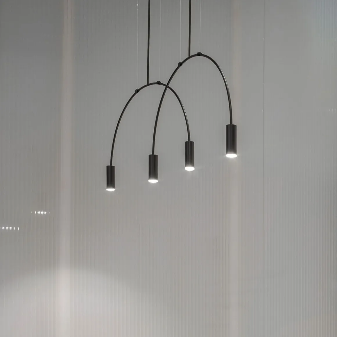 Matériaux : corps métal et têtes aluminium, diffuseurs acrylique (PMMA), câbles nylon transparent