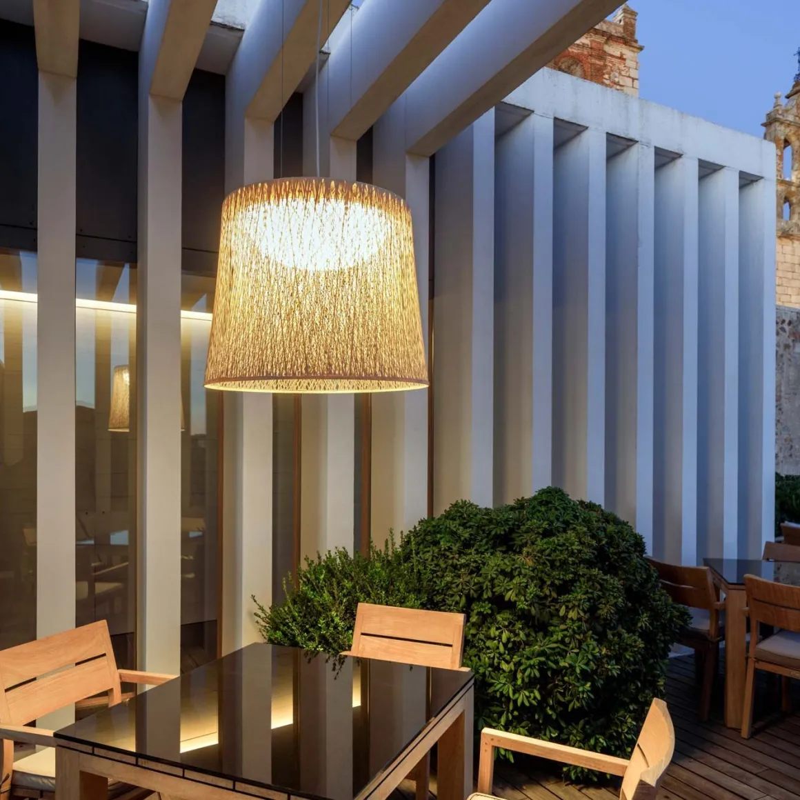 Les lampes suspendues d’extérieur Wind sont une création de Jordi Vilardell pour Vibia, et sont idéales pour les zones d’extérieur grâce à leur IP65. Elles se caractérisent par leur design et pour le choix de leurs matériaux innovants comme la fibre de verre pour l’abat-jour.