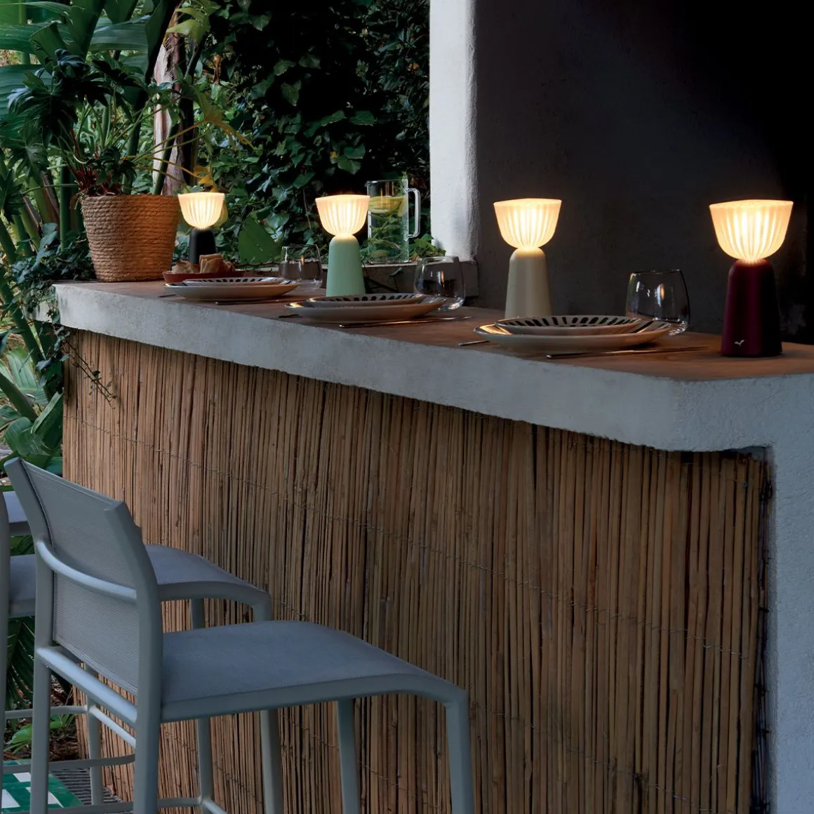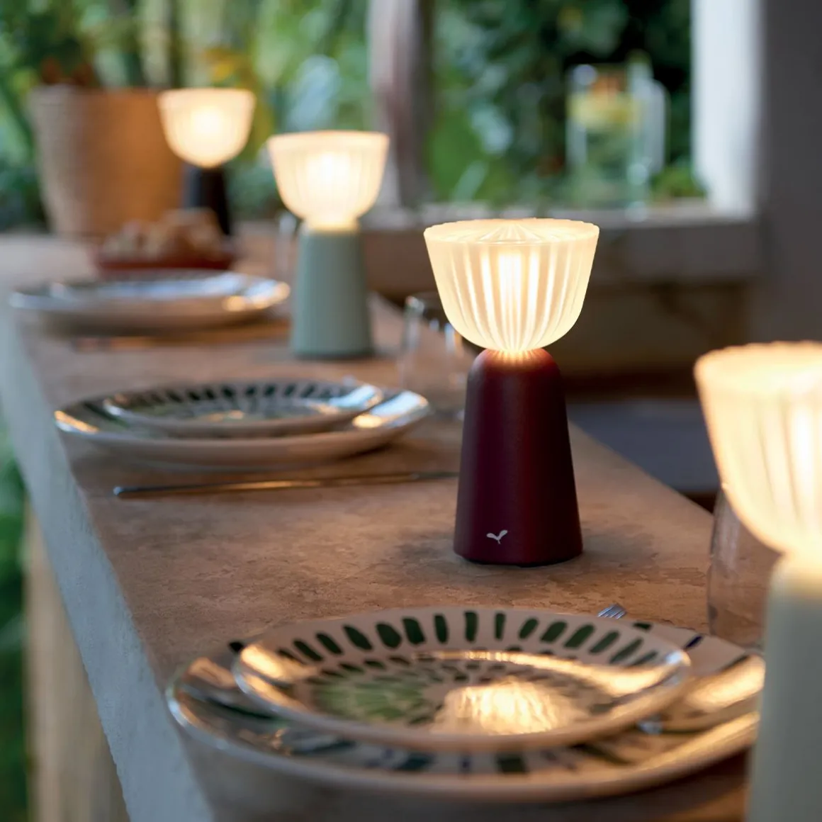 Imaginée par Tristan Lohner, cette lampe à poser séduit autant par son look rétro-chic que par son caractère innovant. Véritable petit bijou de technologie, elle innove à travers une nouvelle fonctionnalité, et pas des moindres : un interrupteur à bascule intégré ! Son côté ludique va forcément vous faire craquer : un mouvement à droite ou à gauche et hop, la lumière s’allume ou s’éteint d’une simple inclinaison (< à 75°). Et côté lumière, elle n’est pas en reste…Sous ses airs de verrerie travaillée, elle propage une lumière tamisée et douce, grâce à son diffuseur ciselé en polycarbonate à la finition proche de celle d’un verre opalin. Idéale comme lumière d’ambiance sur une table de repas intimiste, pour un dîner en tête à tête au restaurant ou chez soi, ou bien encore lors d’apéros entre amis. Petite par la taille mais grande par son autonomie, jusqu’à 10h, elle ne vous lachera pas en plein milieu de soirée, même les plus festives 😉 Et pour la recharger ? Un vrai jeu d’enfant : 3h top chrono grâce au chargeur « Fermob magnet ». Avec elle, tout est facile ! Liberée de tout fil, et facile à prendre en main grâce à sa structure en aluminium, elle s’immisce dans vos intérieurs comme vos extérieurs en un rien de temps. Parfaite également comme élément décoratif pour les intérieurs, elle saura trouver sa place sur une étagère, une bibliothèque, une console dans une entrée, un salon, un bureau… Et pour les plus férus de déco rétro, elle sera idéale en veilleuse sur une table de chevet ! Et comme une très large majorité de luminaires, elle est éco-conçue : démontable, réparable et recyclable, pour une durabilité prolongée. SWIING a vraiment tout pour plaire !