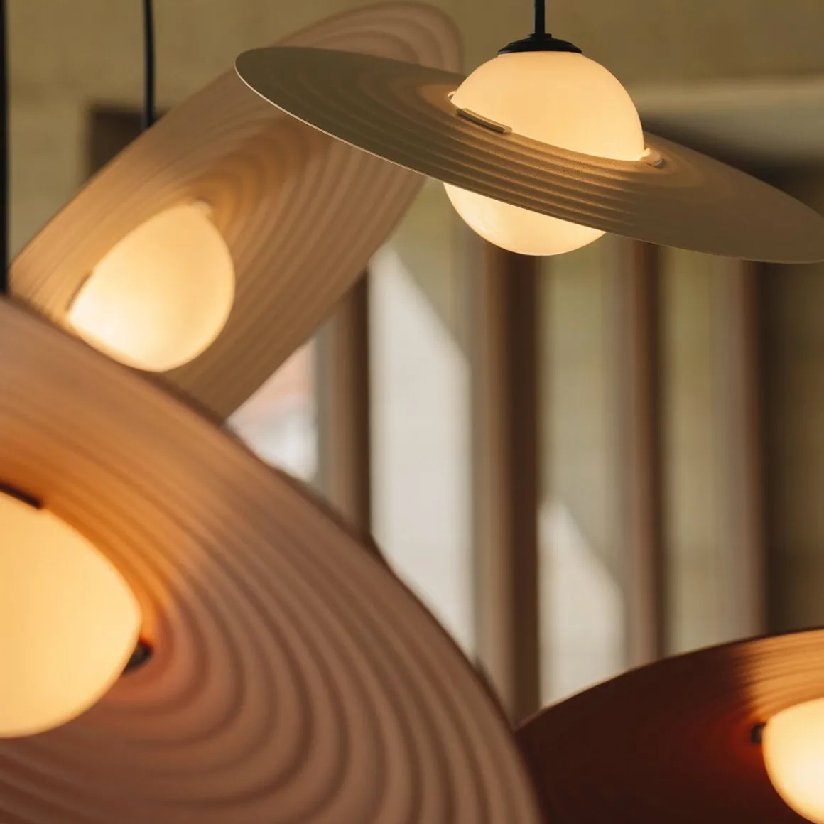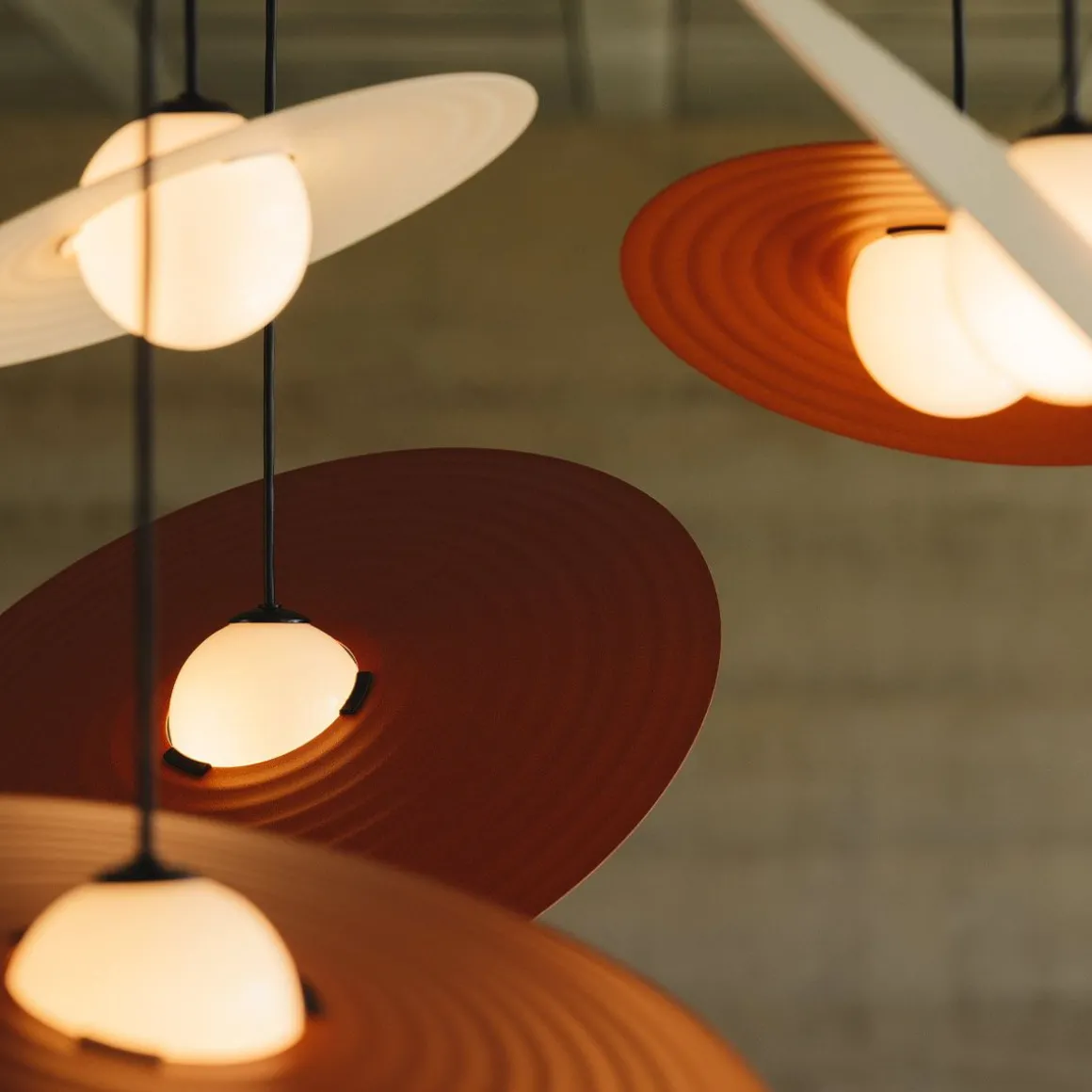 Comme s’il s’agissait d’un petit orchestre, cette série nous entraîne dans un récital de percussions et de diffusion de lumière. En tournant l’abat-jour en verre, nous dirigeons la lumière pour la diluer ou envelopper l’atmosphère. Le système de magnétisation de la tulipe en verre génère un champ magnétique qui rend possible la rotation de l’abat-jour autour de celle-ci, en articulant la rotule située sur l’axe. La collection se compose de quatre versions différentes : lampadaire, applique murale, lampe de table haute et lampe de table basse, dans trois couleurs différentes qui la rendent facilement adaptable à tout espace contract ou d’habitat.