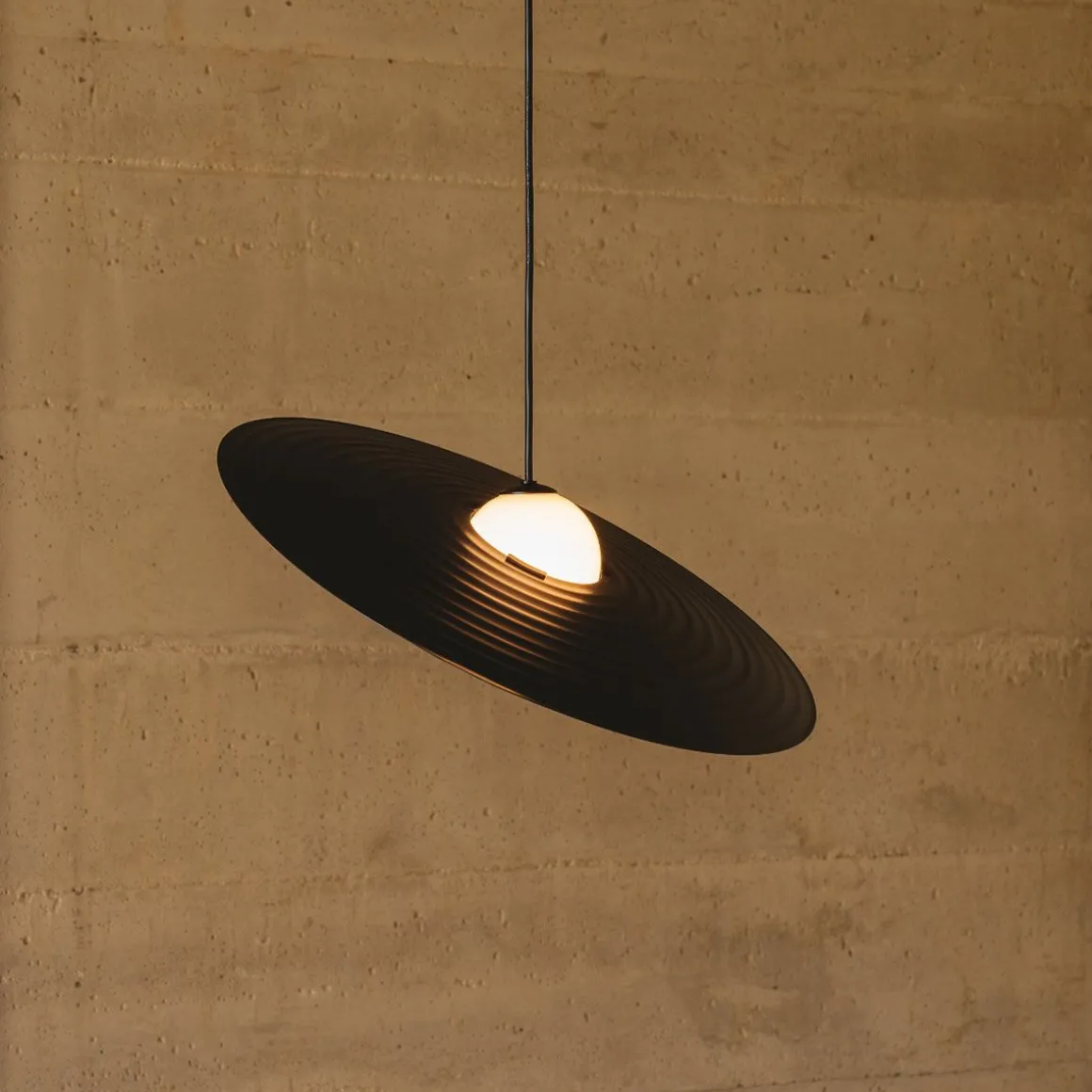 Matériaux : Verre soufflé opalin brillant avec support en polycarbonate injecté, finition laquée noir mat