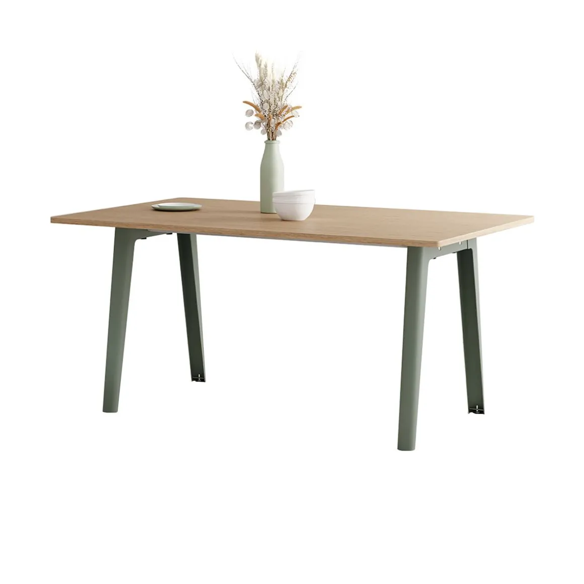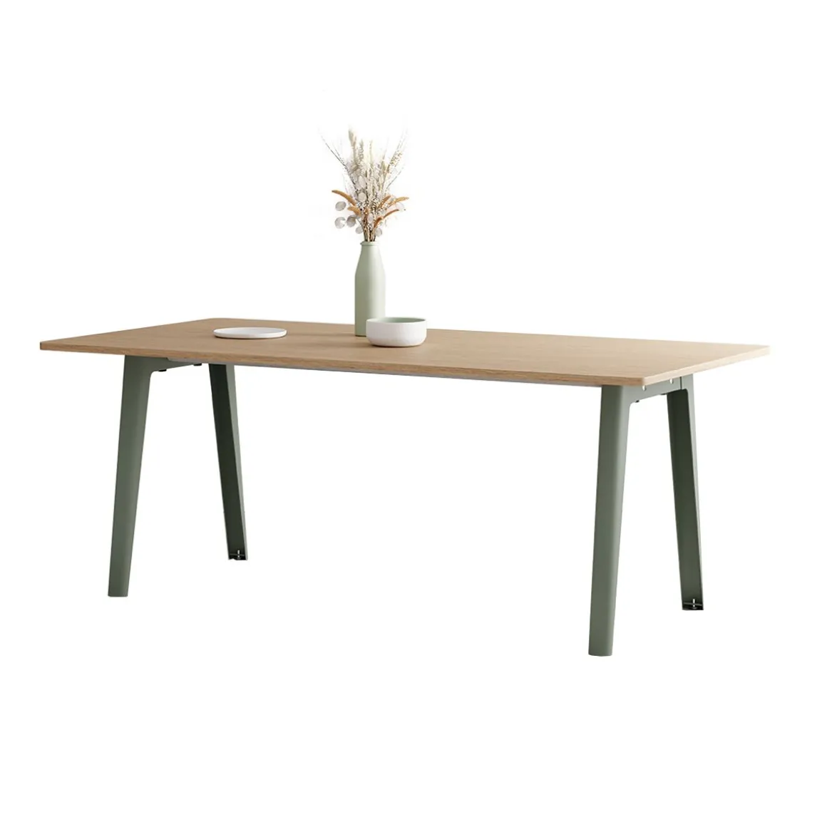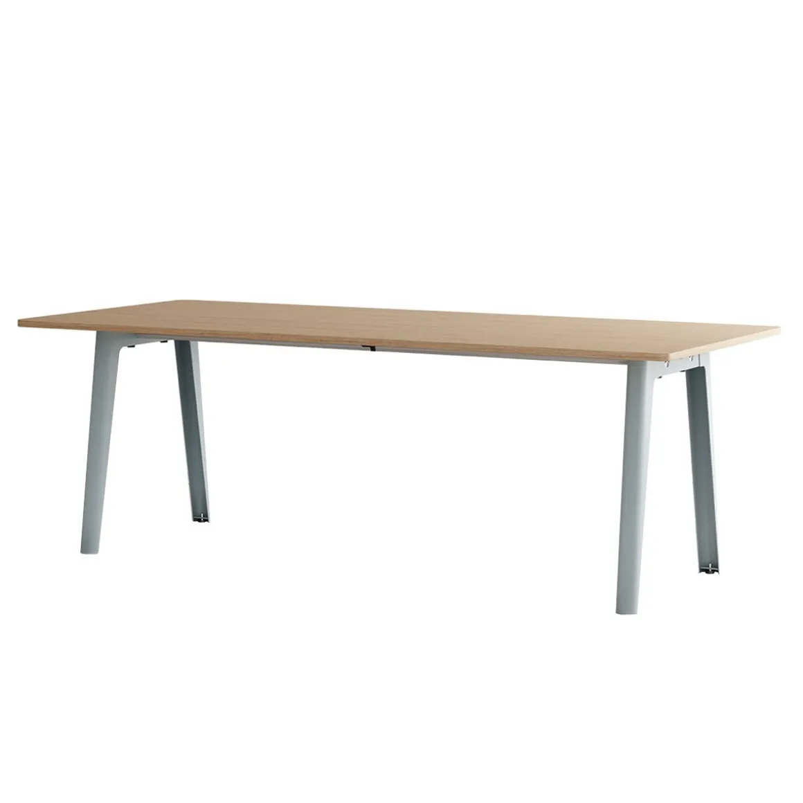 Une table NEW MODERN est composée de 2 piètements en acier dans lesquels s’insèrent deux poutres de support en acier inoxydable. Le plateau s’insère sur la structure afin d’y être vissé (dans le cas des plus grands formats, une traverse mobile viendra compléter l’ensemble au centre du plateau). NEW MODERN est le fruit d’un an de travail et d’itérations pour créer un système de table modulable aussi efficace sur les plans fonctionnels et industriels qu’en matière de durabilité. La qualité de sa conception permet au système NEW MODERN d’être décliné en plusieurs formes et tailles (du bureau individuel à la table à manger XL en passant par la table ronde) et est disponible avec des plateaux en bois éco-certifié et en plastique recyclé.