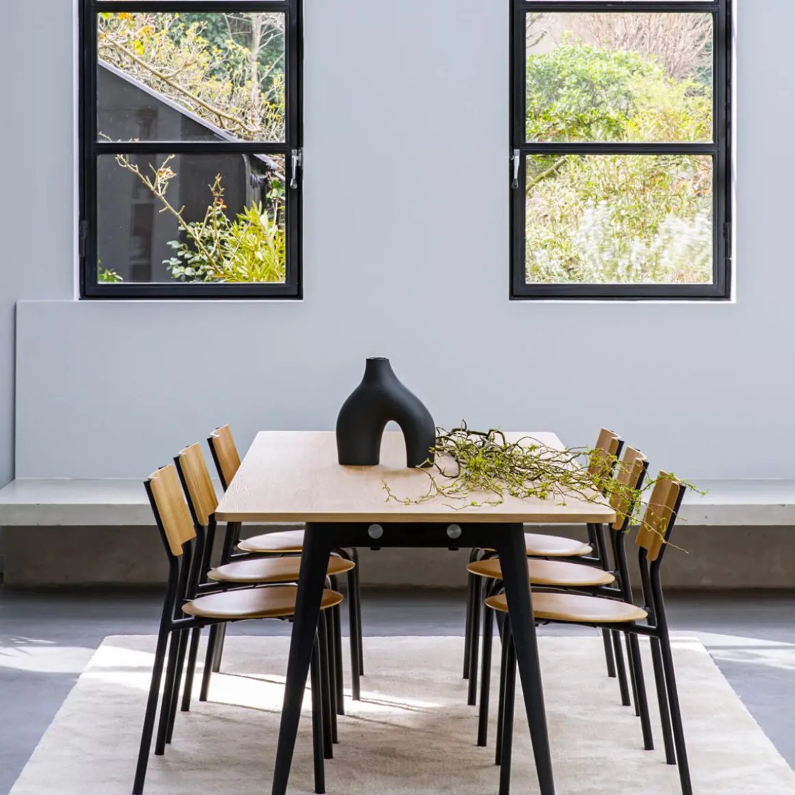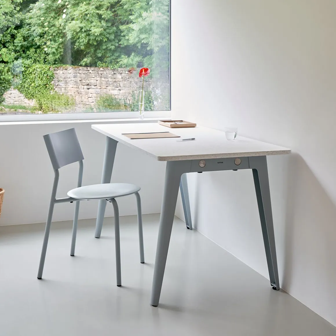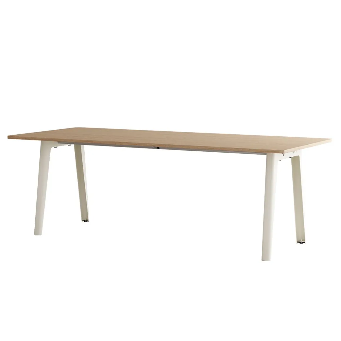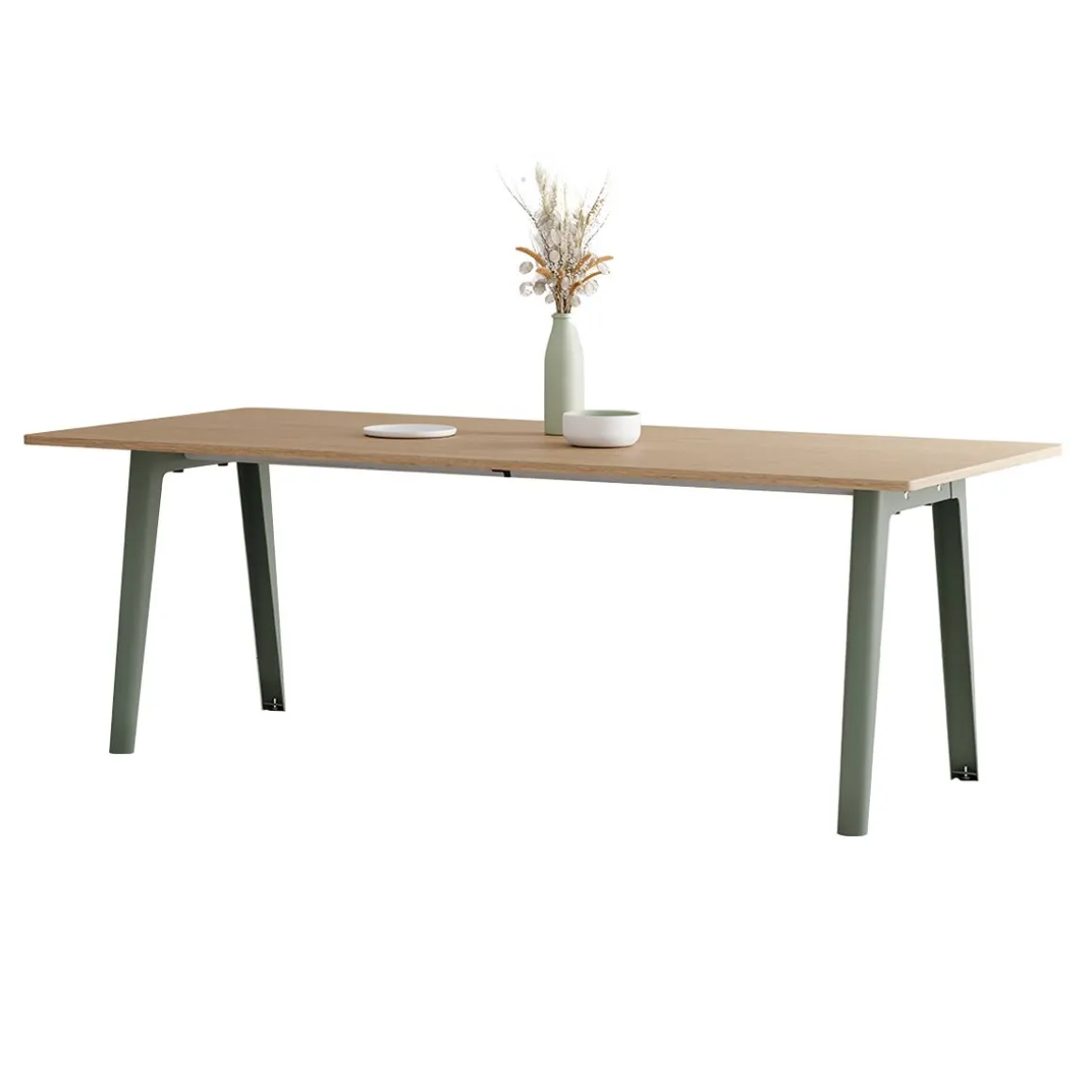 Une table NEW MODERN est composée de 2 piètements en acier dans lesquels s’insèrent deux poutres de support en acier inoxydable. Le plateau s’insère sur la structure afin d’y être vissé (dans le cas des plus grands formats, une traverse mobile viendra compléter l’ensemble au centre du plateau). NEW MODERN est le fruit d’un an de travail et d’itérations pour créer un système de table modulable aussi efficace sur les plans fonctionnels et industriels qu’en matière de durabilité. La qualité de sa conception permet au système NEW MODERN d’être décliné en plusieurs formes et tailles (du bureau individuel à la table à manger XL en passant par la table ronde) et est disponible avec des plateaux en bois éco-certifié et en plastique recyclé.