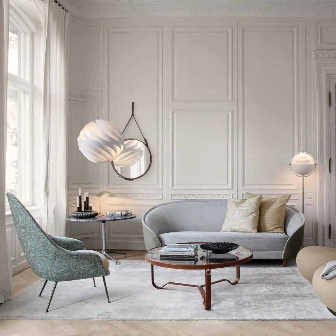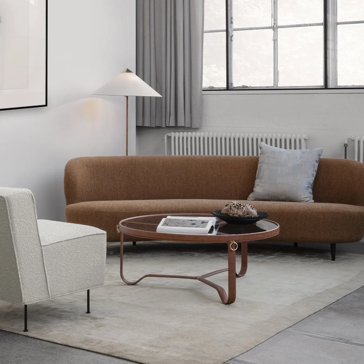 Table Adnet Ø 100 de Gubi. La table basse Adnet a été conçue à l’origine par le moderniste français Jacques Adnet (1901-1981) dans les années 1950. Adnet a toujours été en avance sur les tendances contemporaines et est devenu célèbre pour ses conceptions avant-gardistes et sa combinaison inhabituelle de cuir, de métal et de verre. L’iconique Adnet Coffee Table illustre tout ce que l’architecte et designer d’intérieur français défend et associe parfaitement son style Art Déco à son engagement résolu en faveur des principes fonctionnalistes.