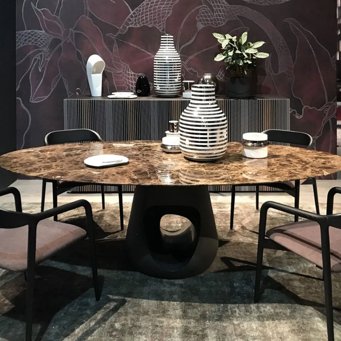 Barbara est une table avec un plateau ovale ou rond en noyer avec une base centrale en béton, ou encore avec un plateau en marbre. Le produit s’inspire librement des œuvres de la sculpture anglaise Jocelyn Barbara Hepworth (1903-1975), et de son étude incessante des relations entre l’homme, l’environnement naturel et les matériaux. La forme sculpturale, les dimensions généreuses avec les bois et marbres précieux contribuent à donner à la table un look luxueux et contemporain avec une personnalité incontestable.