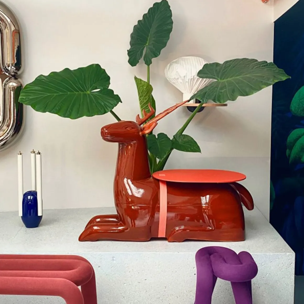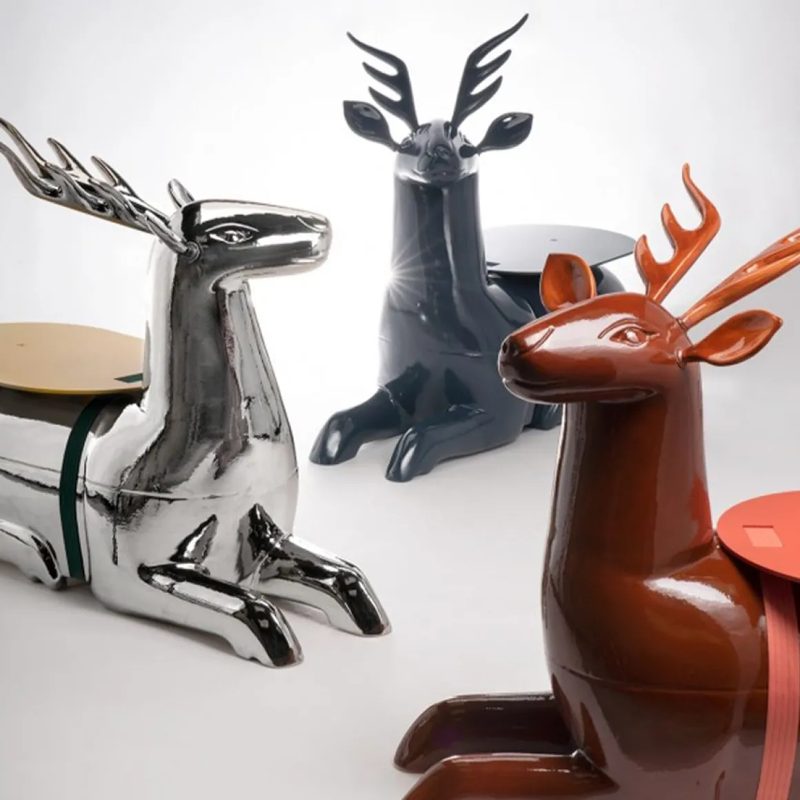 Grâce aux technologies du scanner 3D et du fraisage numérique, Lanna, qui tient son nom d’un ancien royaume asiatique, est une réplique d’un objet ancien originaire de Thaïlande du Nord. Le changement d’échelle permis par la modélisation et la sculpture 3D transforme son usage en faisant passer cet objet d’une typologie à une autre. D’auteur inconnu et difficile à dater, son dessin intrigue par sa géométrie régulière et stylisée qui rappelle des codes de l’Art Deco. Transposée à cette nouvelle échelle, elle présente encore les détails offerts par le matériau d’origine et les gestes de sa fabrication. Cette table basse est pensée comme une hybridation, à la fois sculpture et meuble, industrielle et artisanale. Elle s’inscrit dans le prolongement des vide-poche Replica #1 et #2, aussi issus d’objets anonymes aux qualités ornementales et narratives remarquables. Ici, la symbolique du cerf demeure mystérieuse. Cet animal, représenté en abondance par la quasi-totalité des cultures dans le monde mais jamais domestiqué, constitue une figure mythologique et poétique permettant à chacun d’y projeter un récit. Lanna ne nous livrera pas d’informations sur son passé mais sa quiétude et son regard bienveillant font de sa présence une compagnie douce et agréablement familière.
